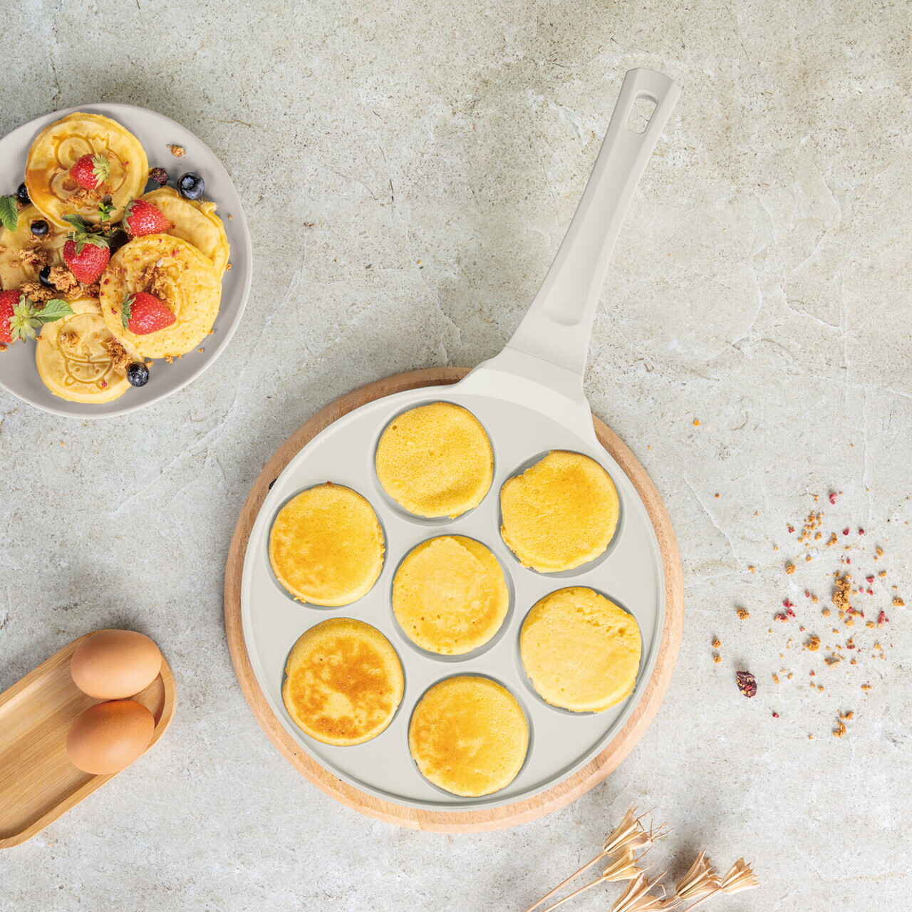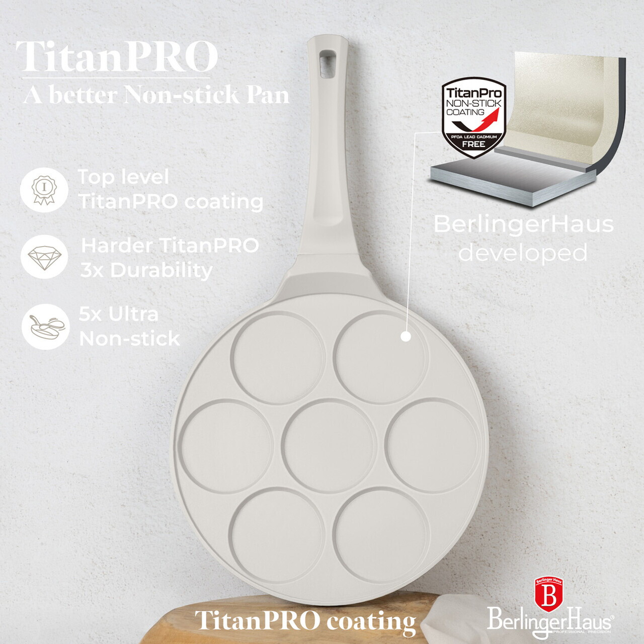 Tigaie pentru clatite, 7 forme Berlinger Haus, Sahara, 26 cm, aluminiu turnat, crem mat