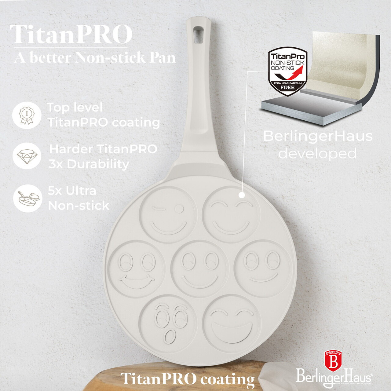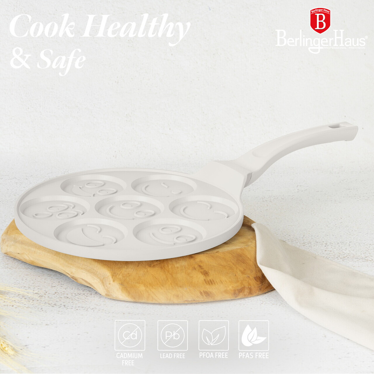 Tigaie pentru clatite, 7 forme emoji Berlinger Haus, Sahara, 26 cm, aluminiu turnat, crem mat