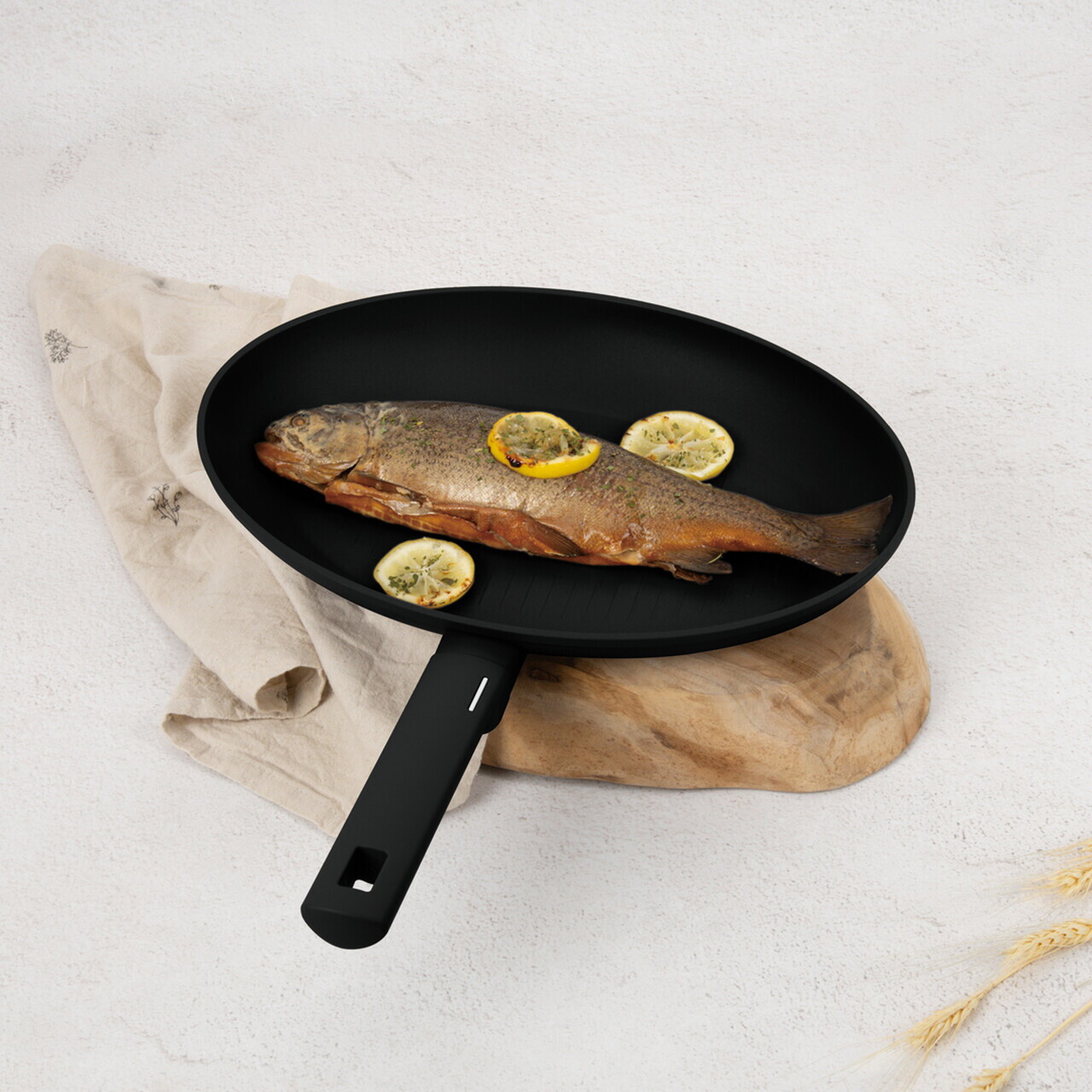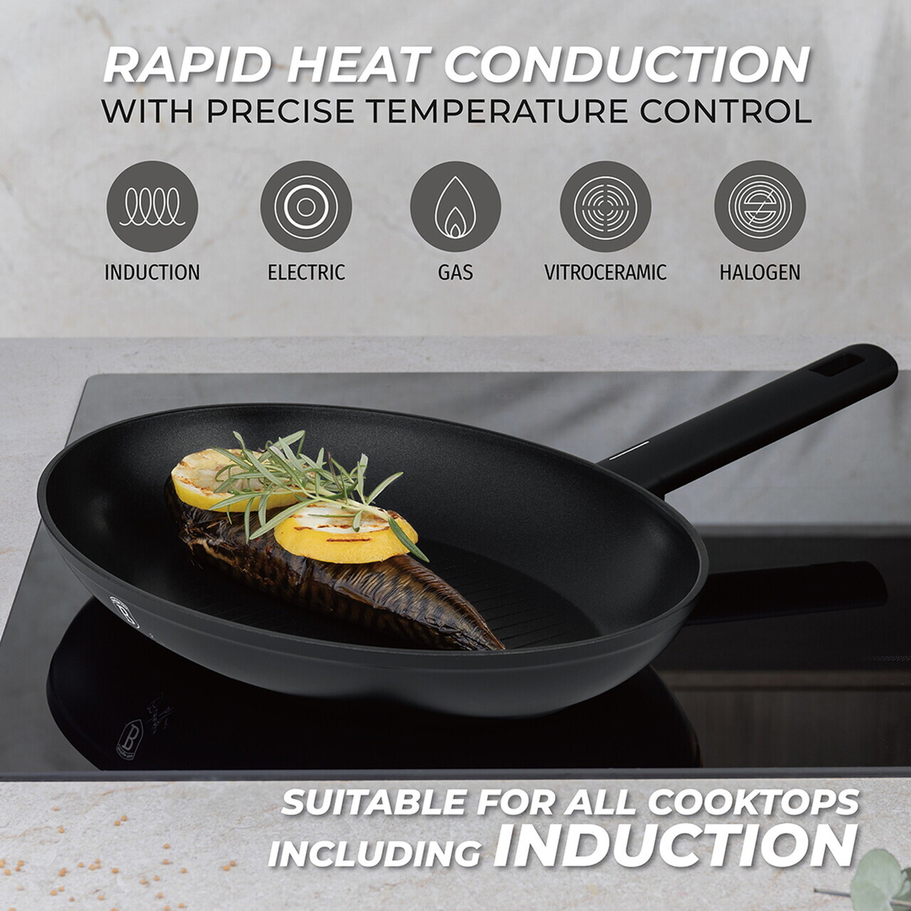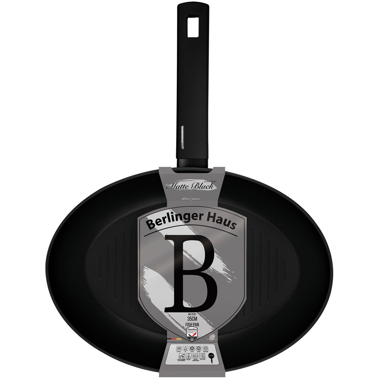Tigaie pentru peste Berlinger Haus, Matte Black, 35 cm, aluminiu forjat, negru