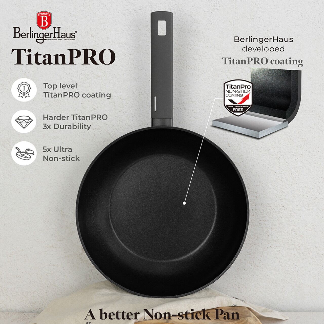 Material: aluminiu forjat cu strat antiaderent TitanPro