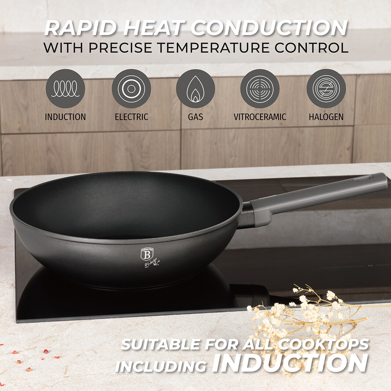 Tigaie Wok Berlinger Haus, Anthracite, 28 cm, 3.2 L, aluminiu forjat, antracit mat