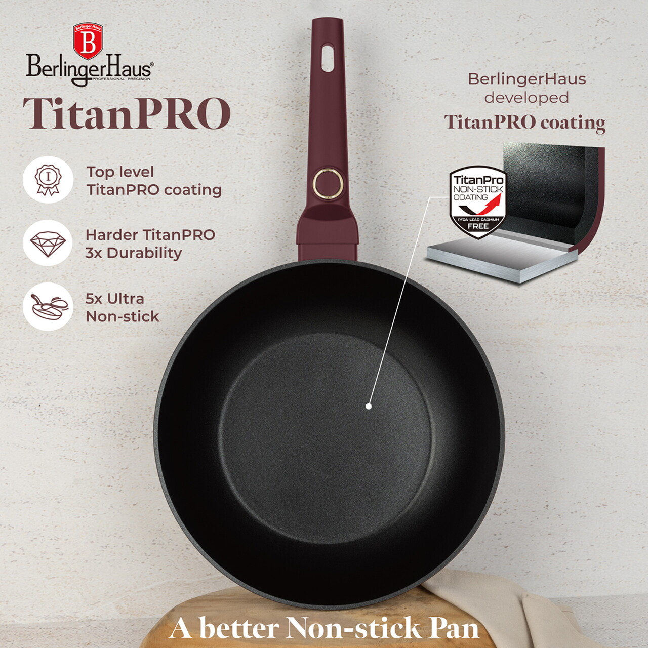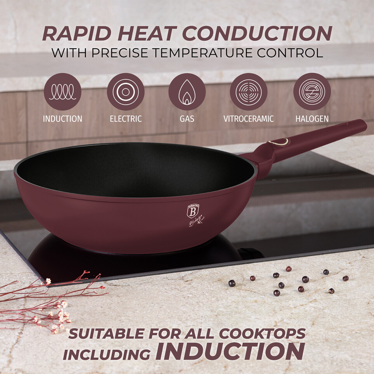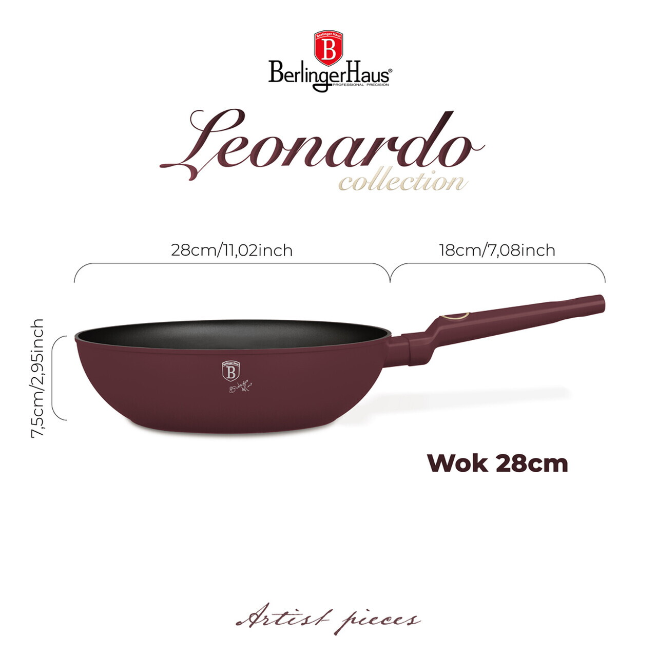 Tigaie Wok Berlinger Haus, Leonardo, 28 cm, 3.2 L, aluminiu forjat, visiniu mat