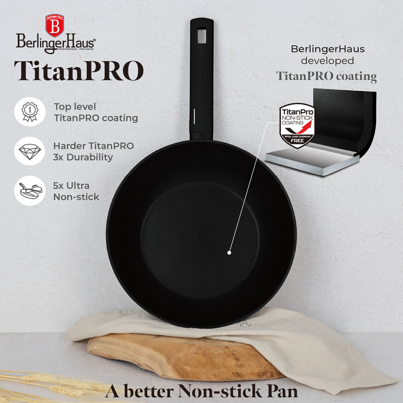 Tigaie Wok Berlinger Haus, Matte Black, 28 cm, 3.2 L, aluminiu forjat, negru