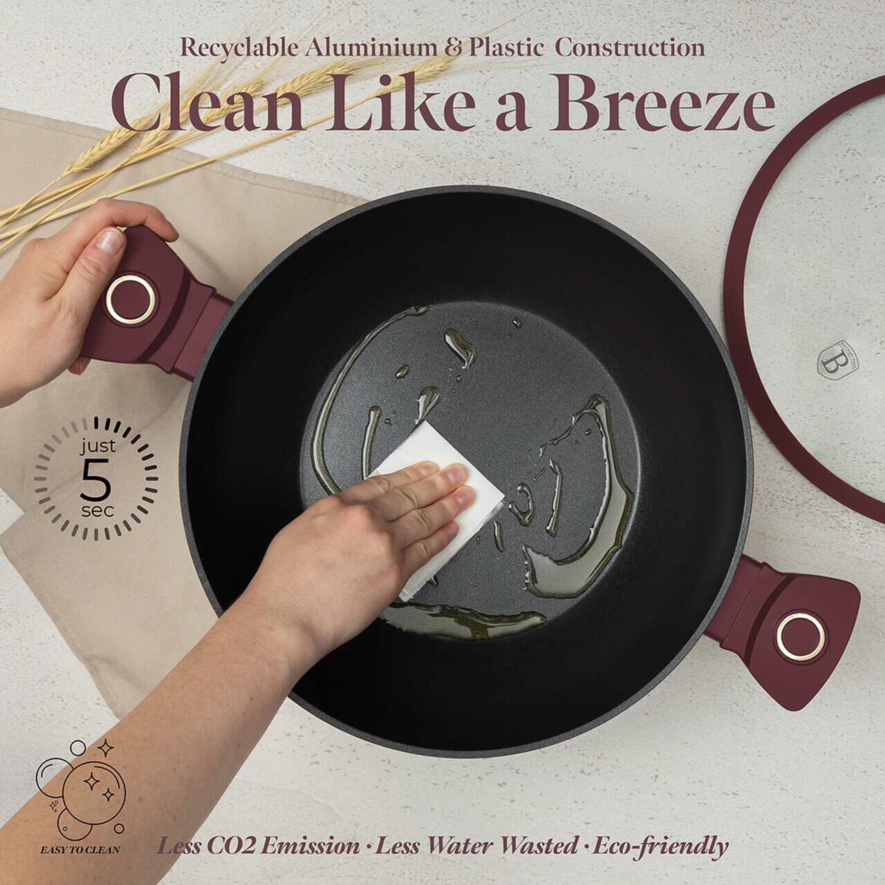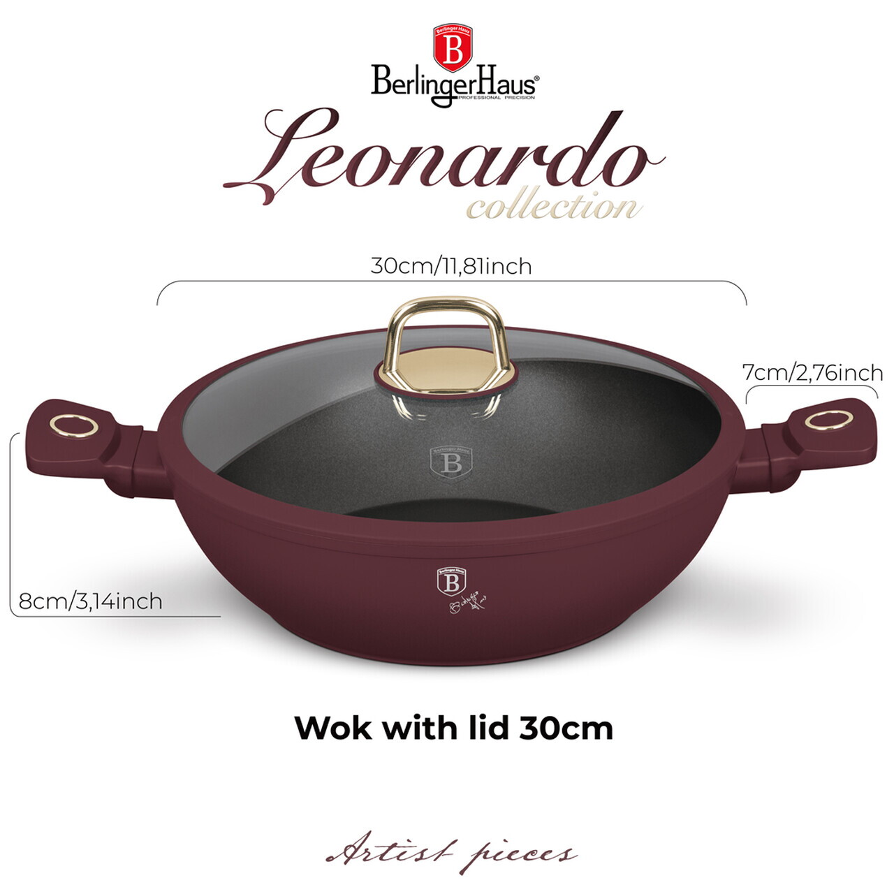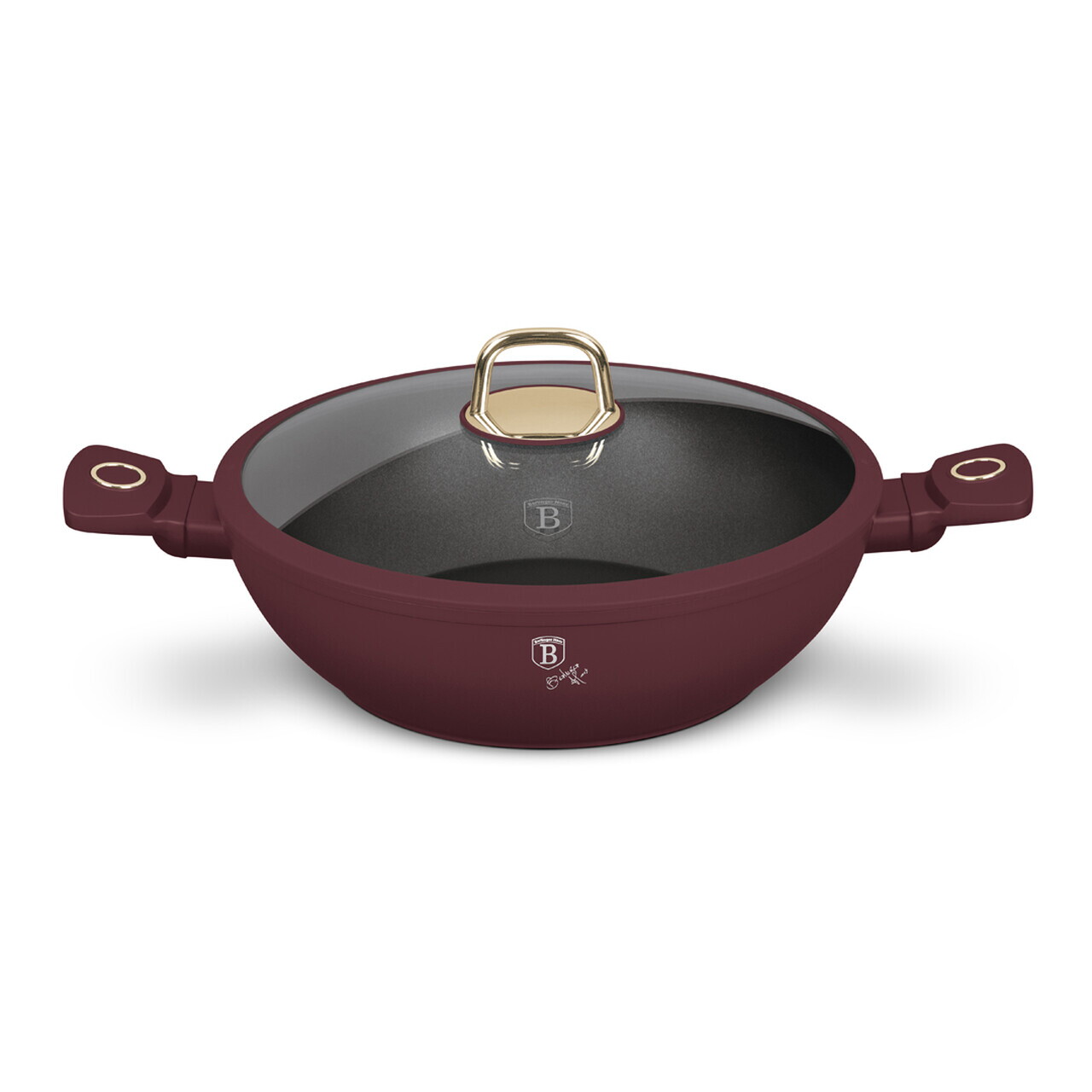 Tigaie Wok cu capac Berlinger Haus, Leonardo, 30 cm, aluminiu forjat, visiniu mat