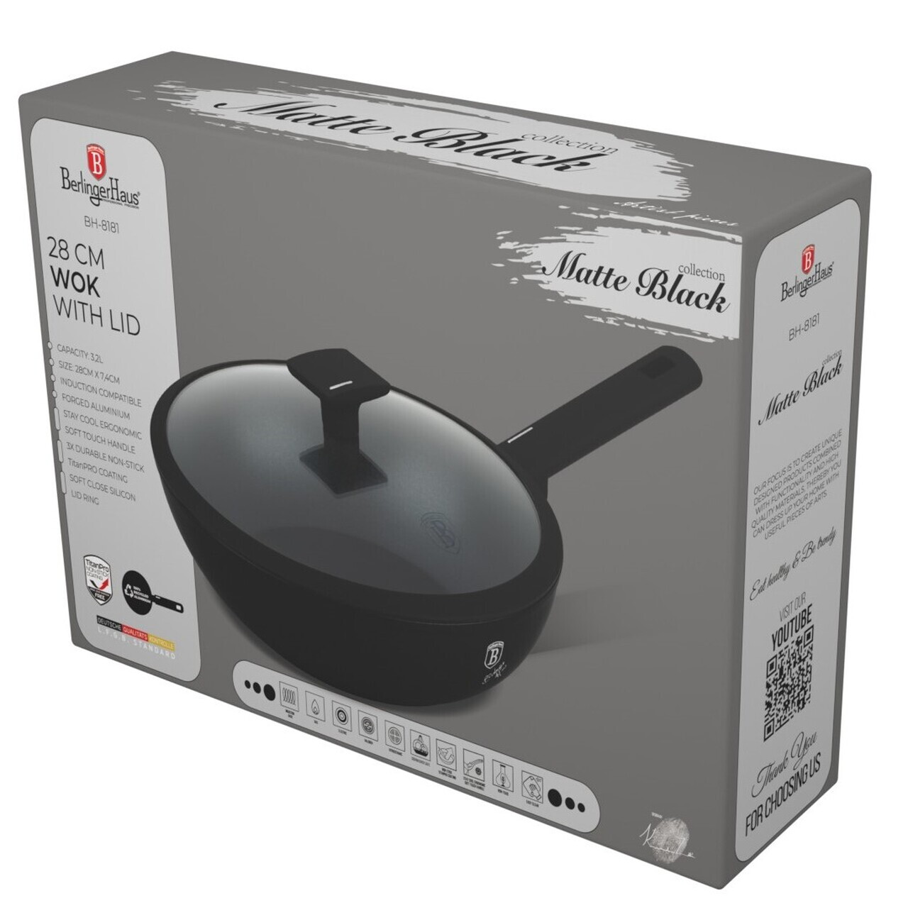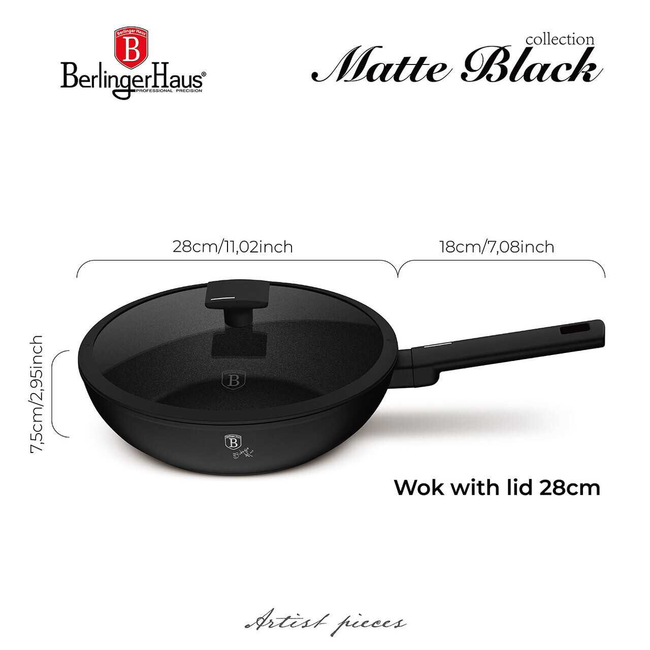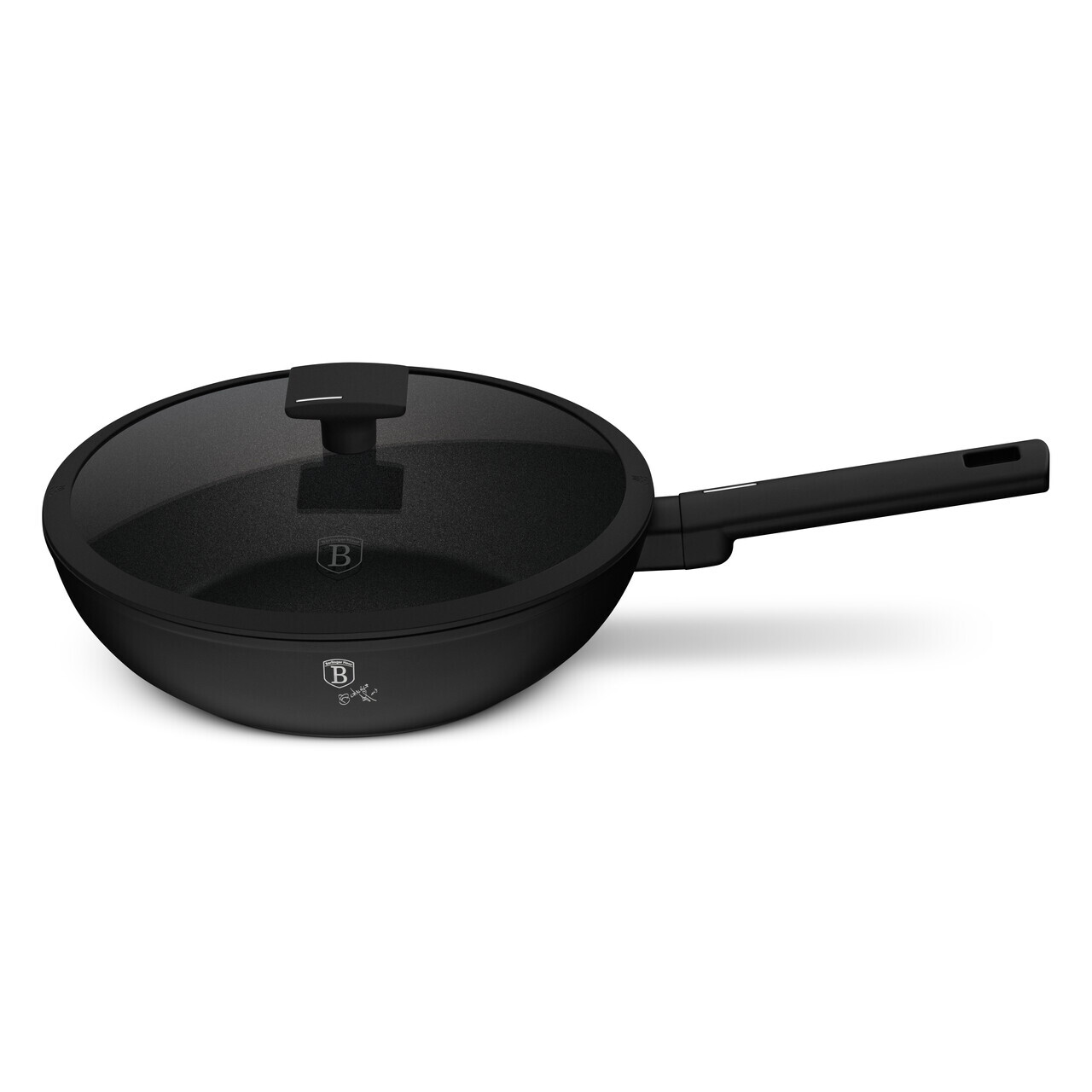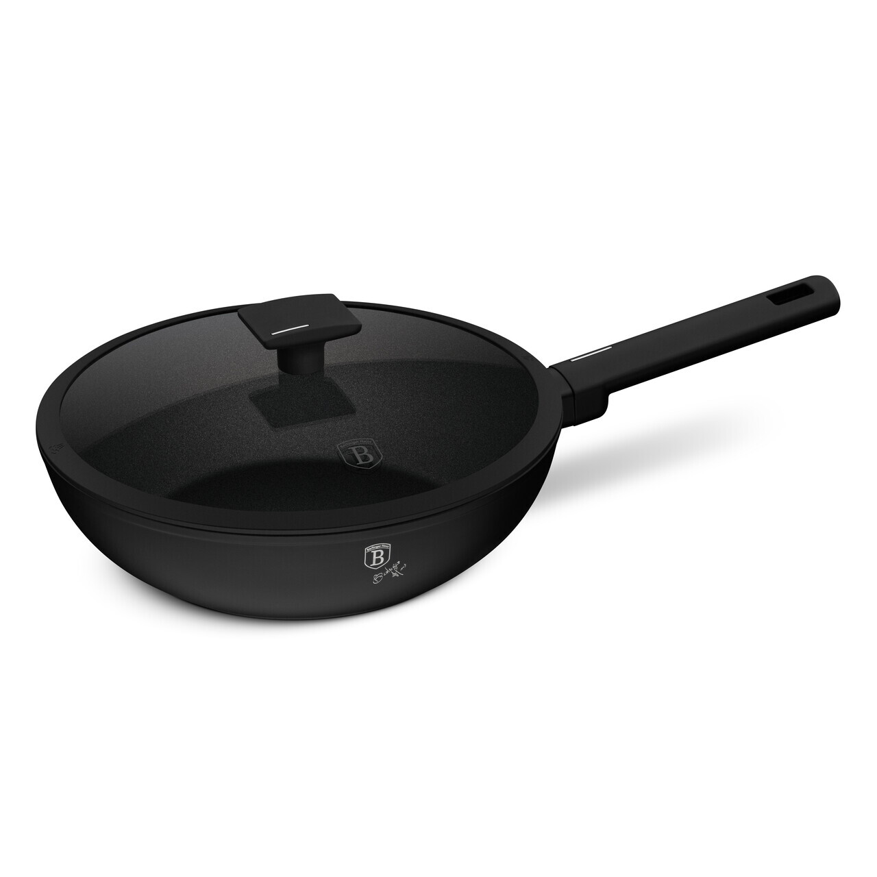 Tigaie Wok cu capac Berlinger Haus, Matte Black, 28 cm, 3.2 L, aluminiu forjat, negru