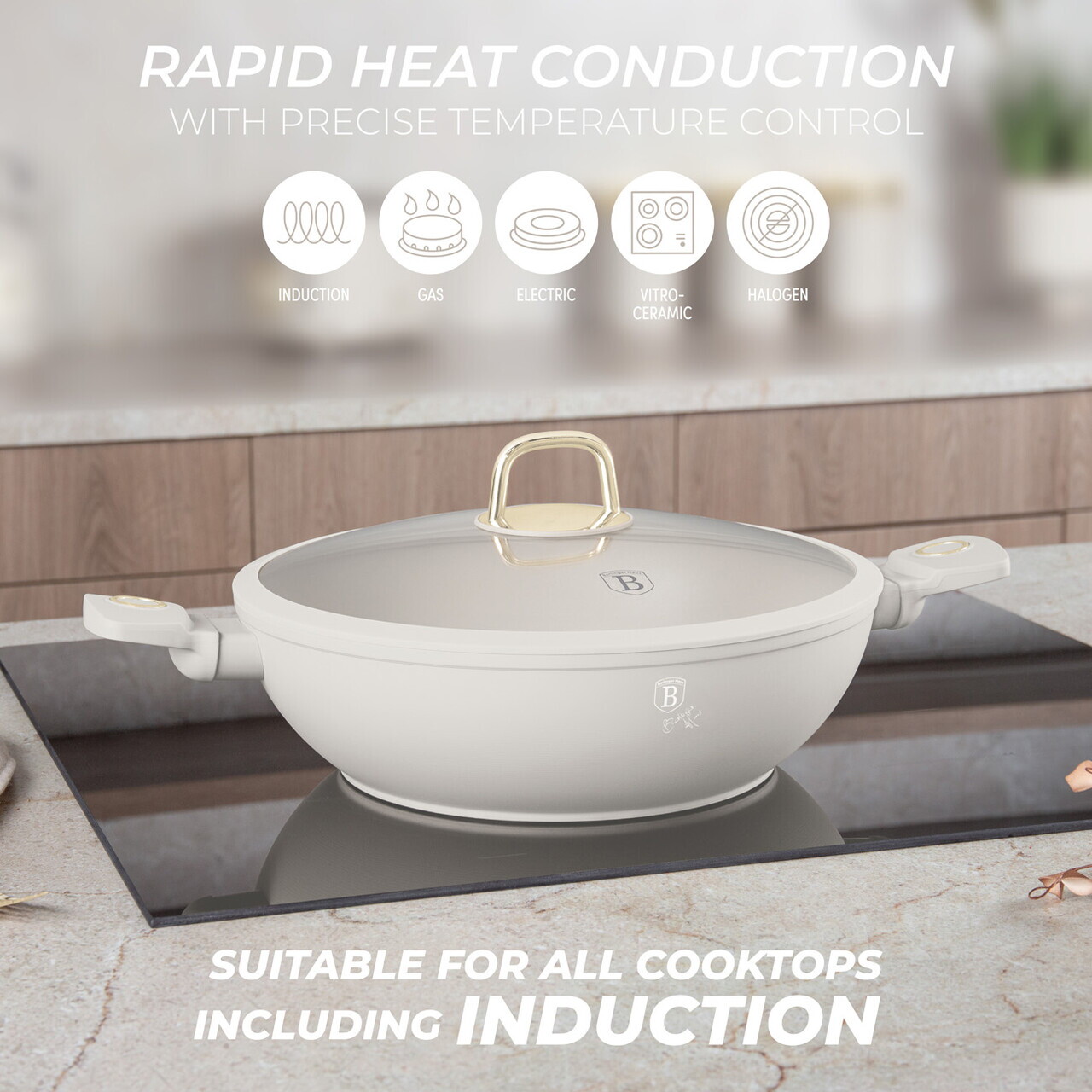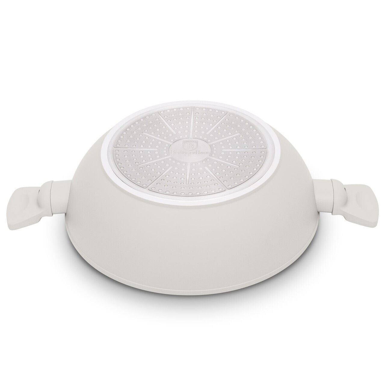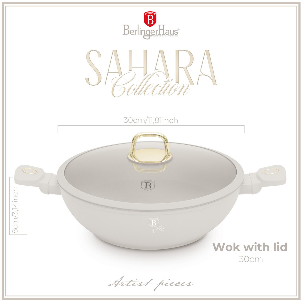 Tigaie Wok cu capac Berlinger Haus, Sahara, 30 cm, aluminiu forjat, crem mat