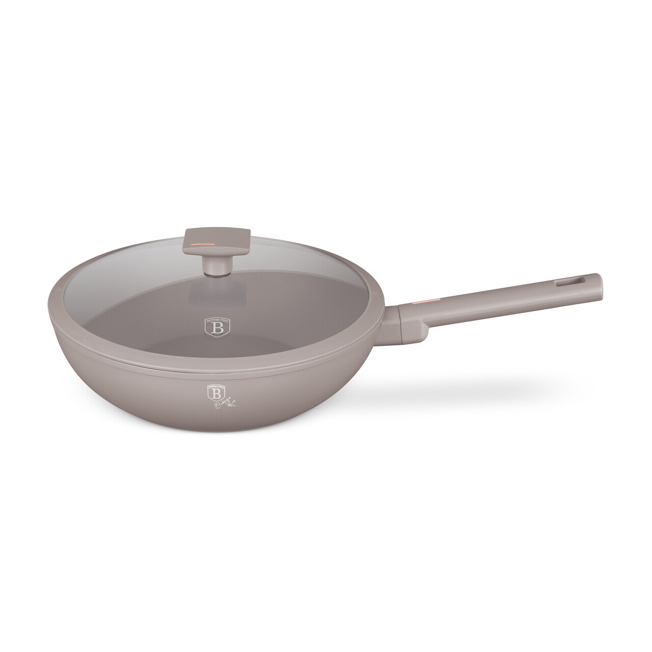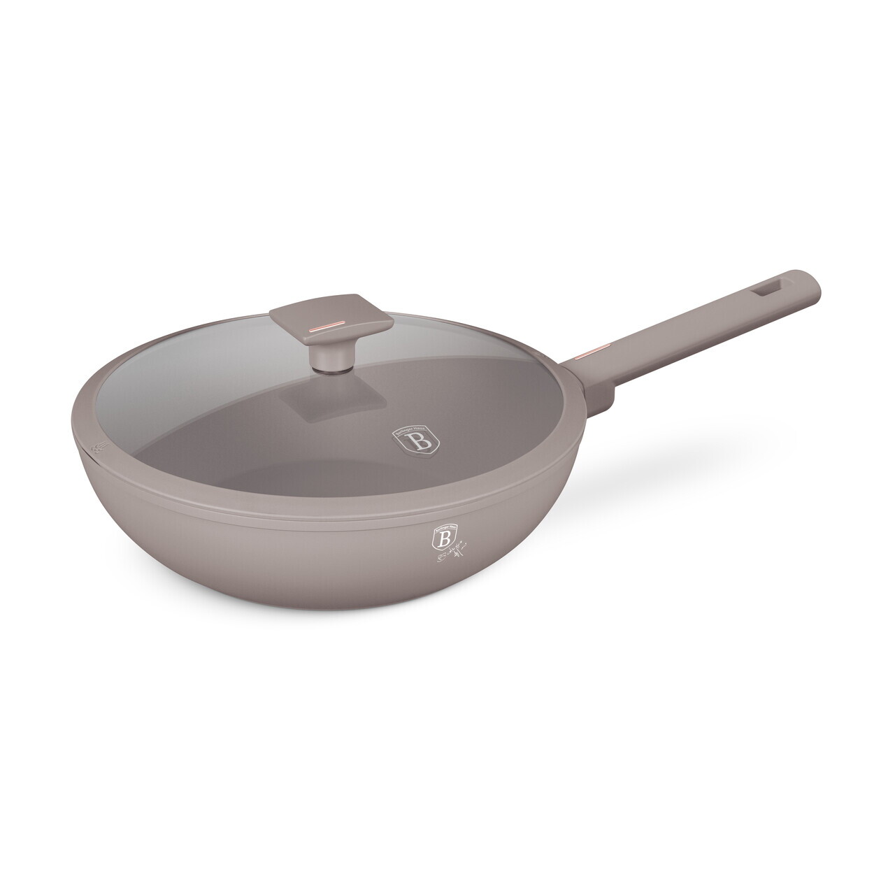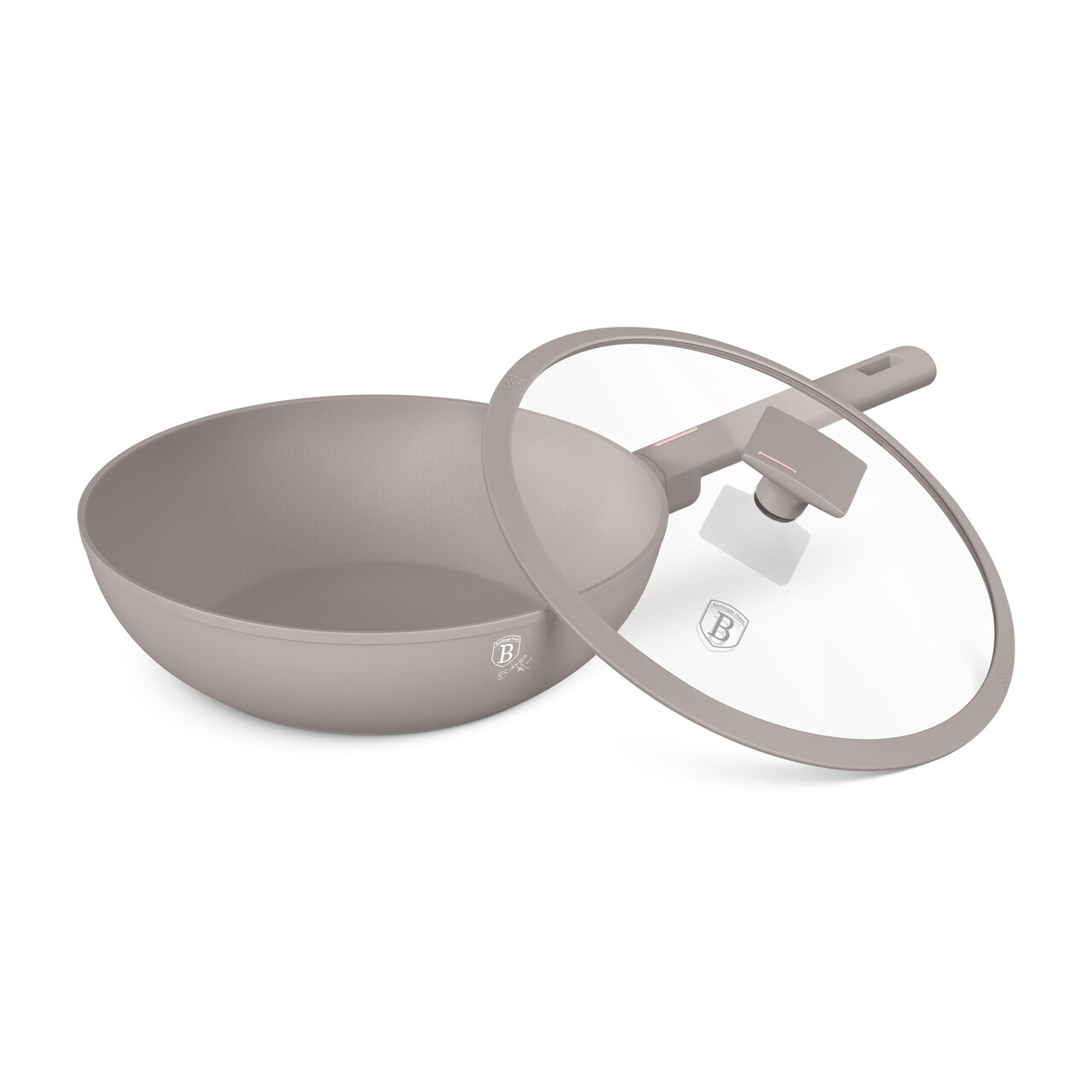 Tigaie Wok cu capac Berlinger Haus, Taupe, 28 cm, 3.2 L, aluminiu forjat, taupe mat