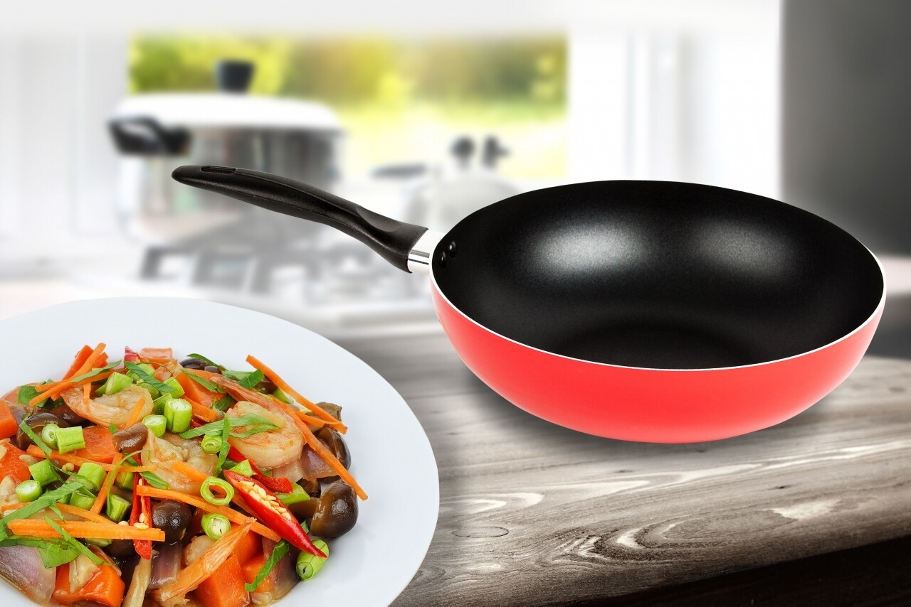 Tigaie wok Miran, Vanora Home, 28 x 8 cm, aluminiu, rosu si negru