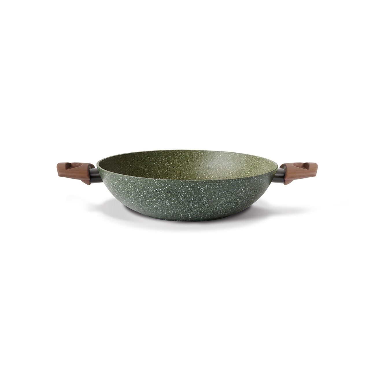 Tigaie Wok pentru inductie TVS Natura antiaderenta, cu manere din bachelita, 32 cm Ø