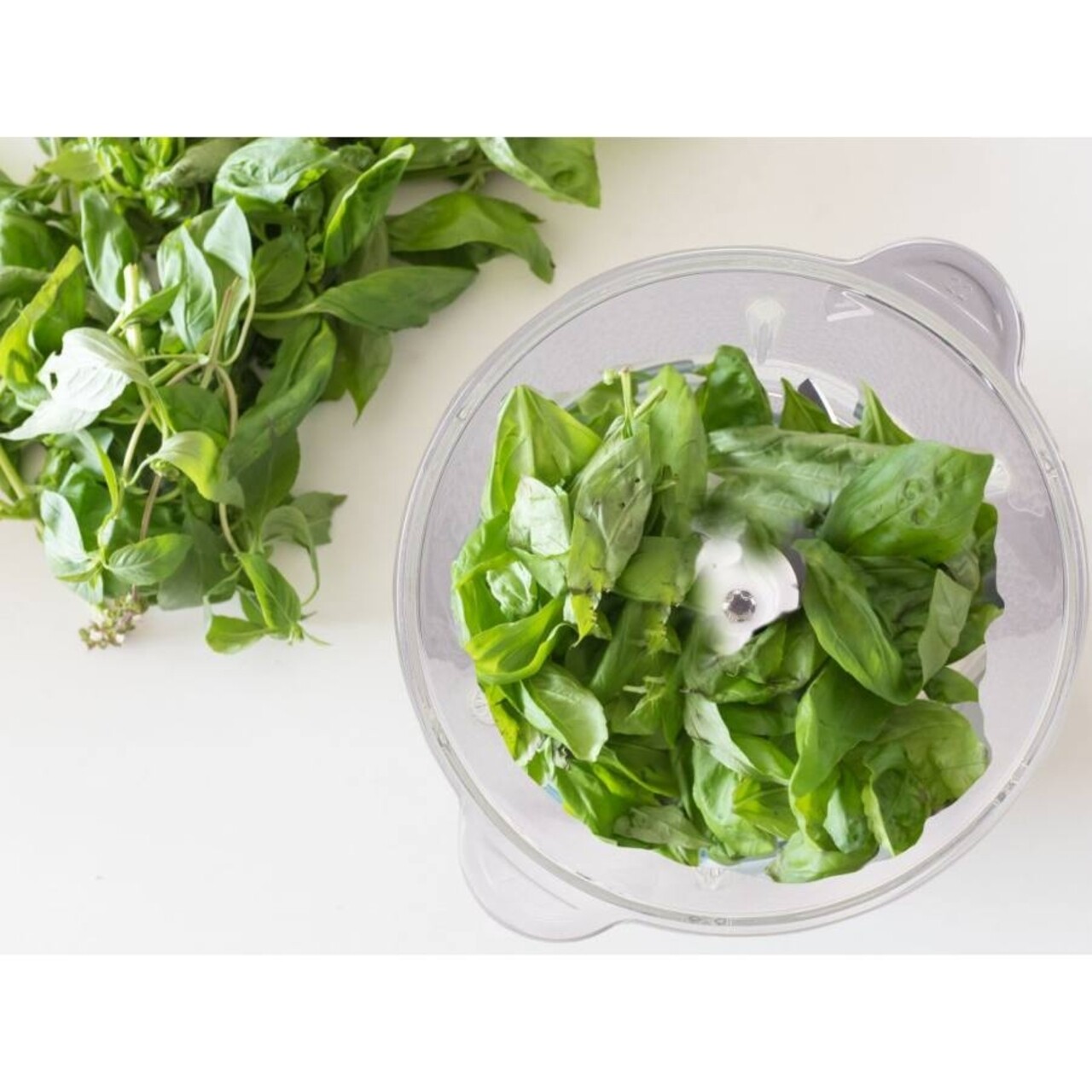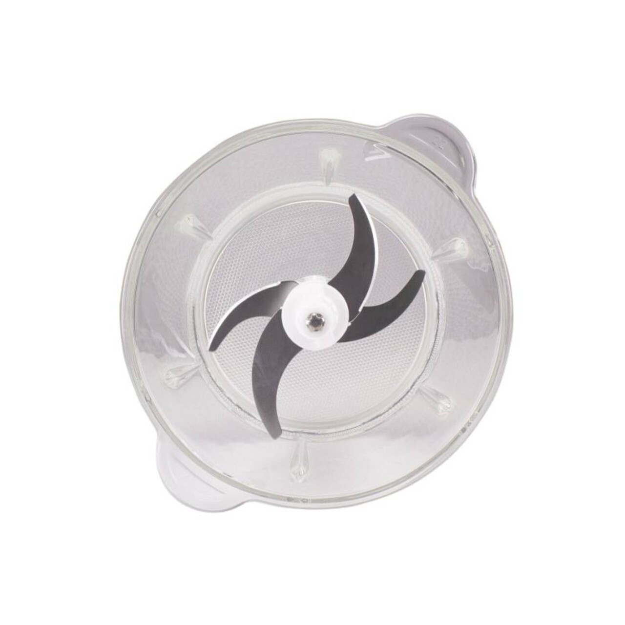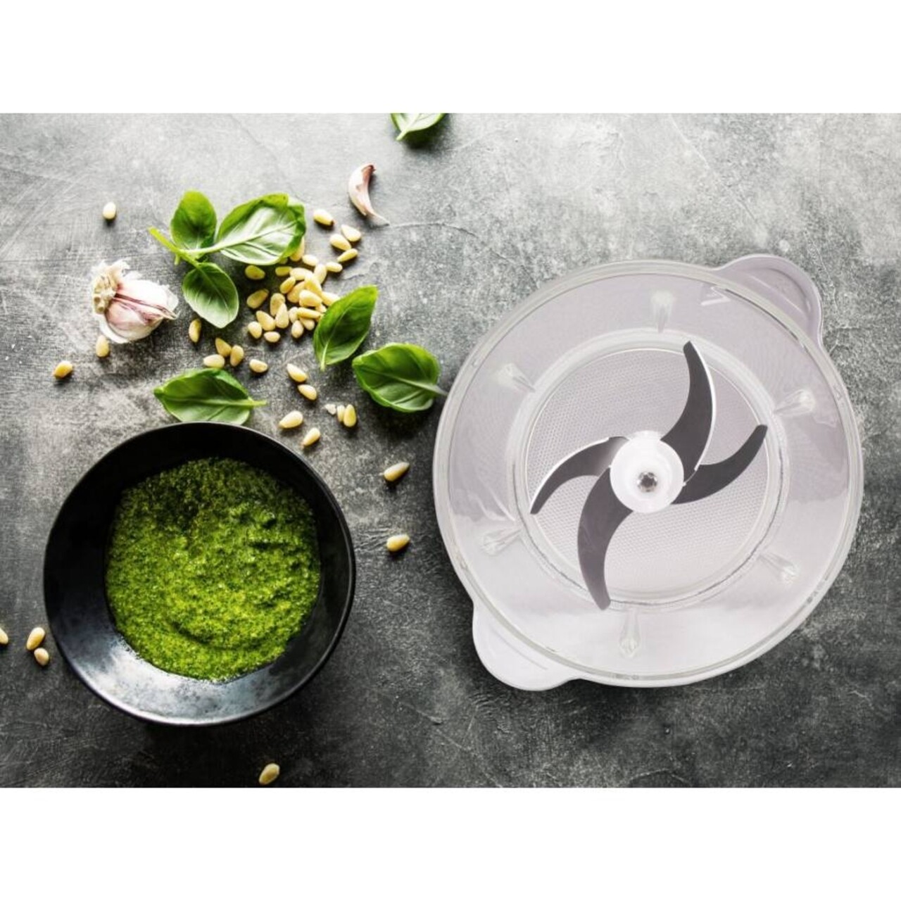 Lama dubla din otel inoxidabil permite tocarea omogena a alimentelor in tot recipientul;