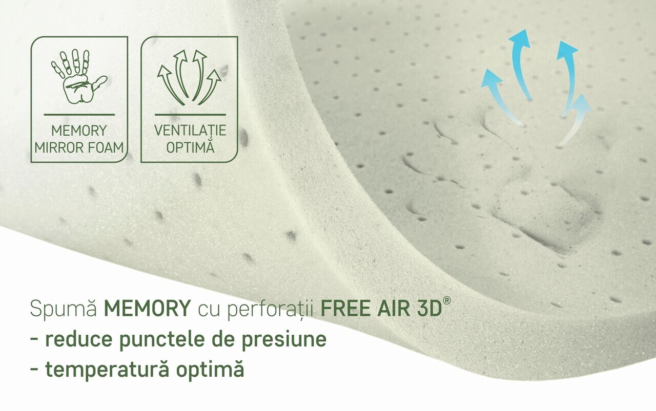 - spuma poliuretanica Memory Mirror Foam® cu perforatii Free Air H = 8 cm