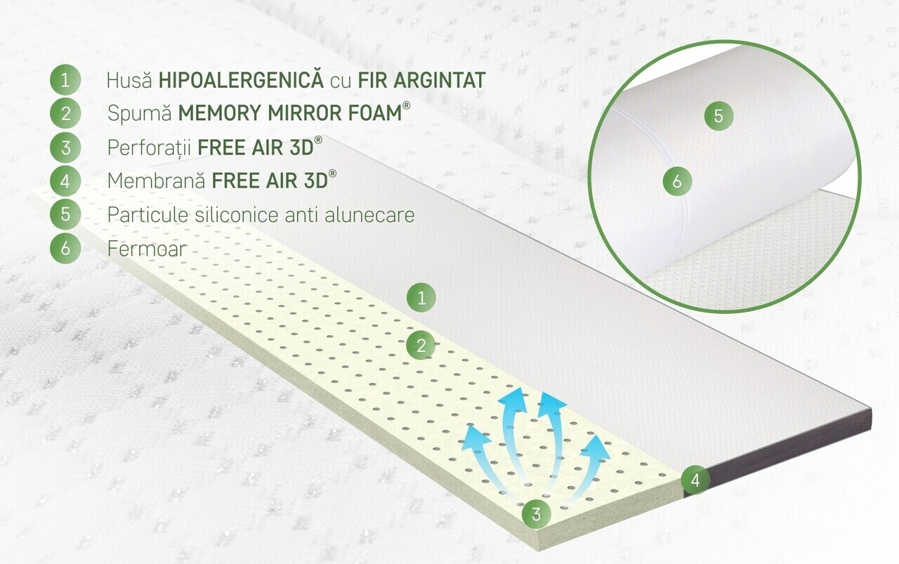 - spuma poliuretanica Memory Mirror Foam® cu perforatii Free Air H = 8 cm