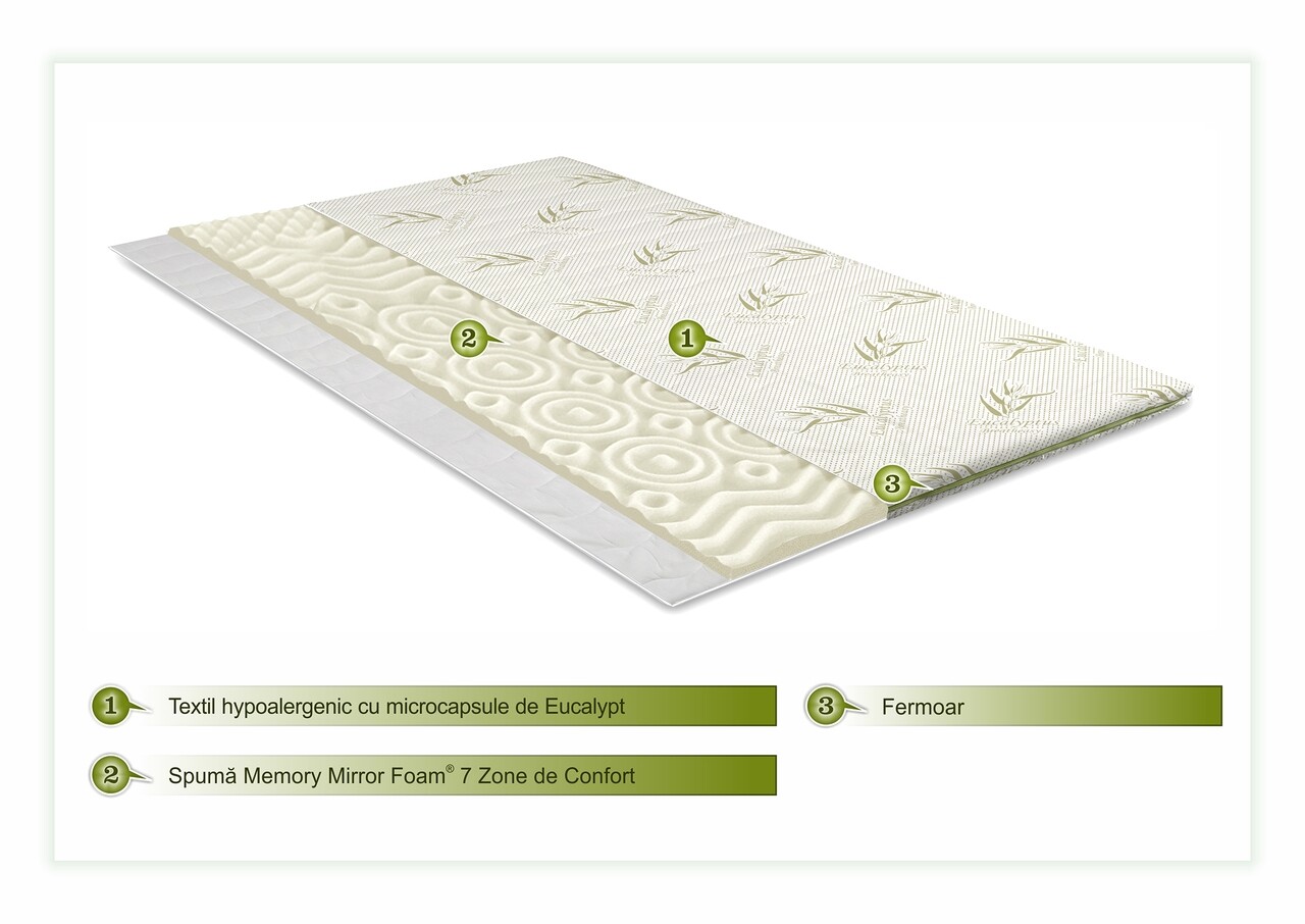 Topper saltea Eucalyptus Memory, 7 zone, 80x200 cm, H 5 cm