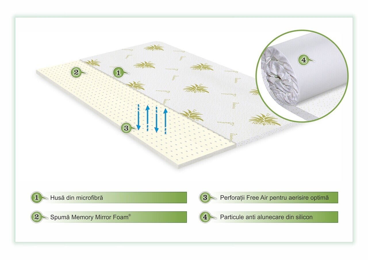 Topper saltea Green Future Aloe Vera Free Air Memory 180x200 cm, H 3 cm