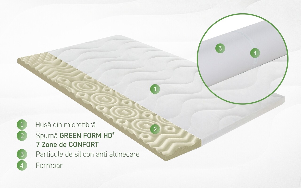 Topper saltea Green Future Mellody 7 Zone de confort 140x200 cm, H 5 cm