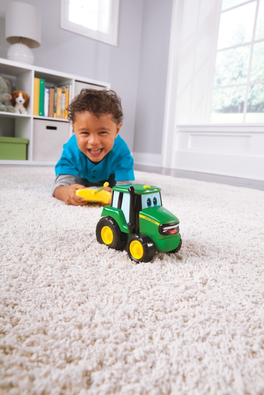 Tractorul Johnny din plastic moale si culori contrastante poate fi controlat prin telecomanda. Acesta are 2 butoane, un buton pentru a merge inainte, iar celalalt pentru a merge in stanga. Aceasta este o jucarie sigura, potrivita pentru cei mici. Antena este flexibila, iar tractorul se opreste automat. ATENtIE! indepartati toate ambalajele inainte de a da copilului jucaria.