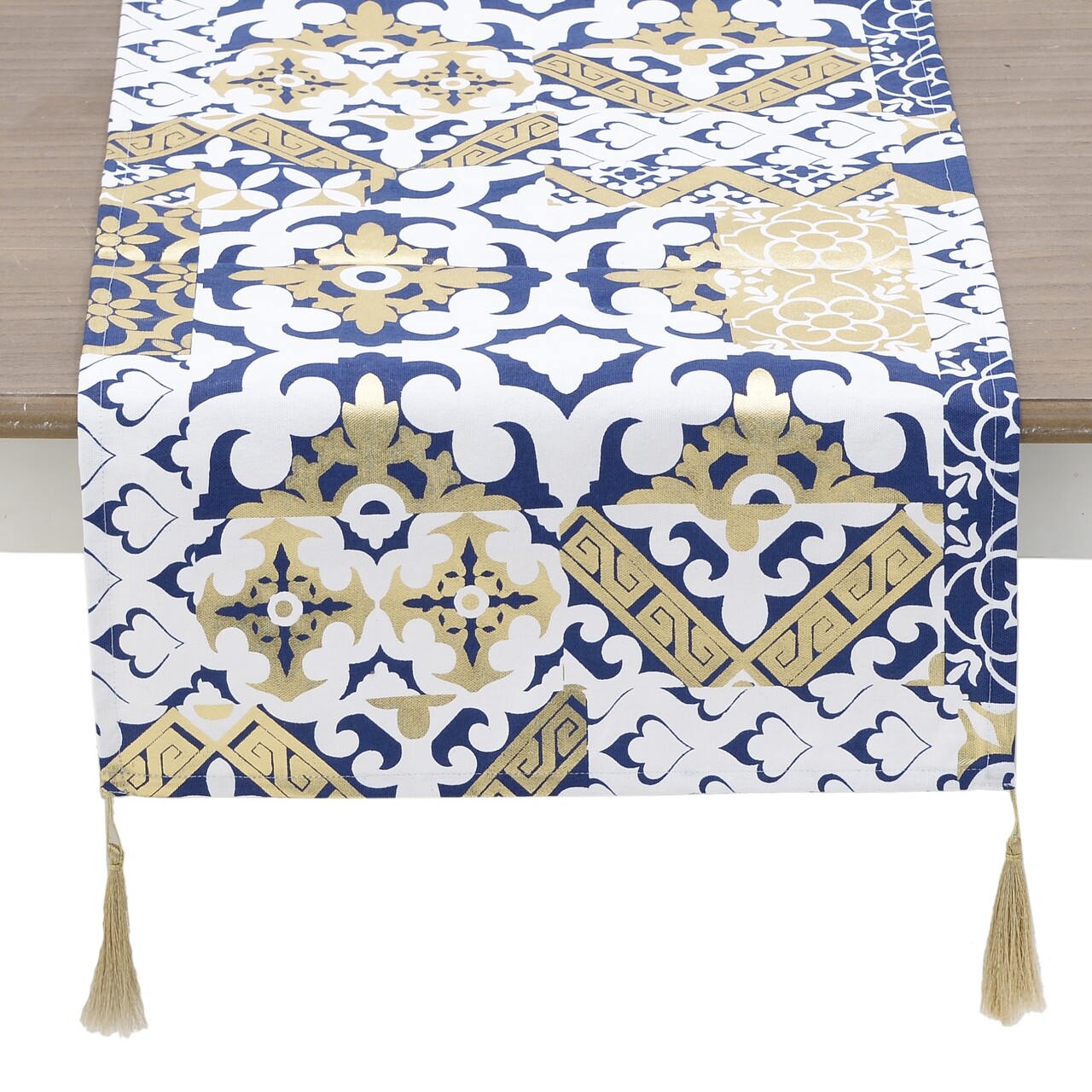 Traversa de masa Blue Gold, InArt, bumbac, 40x180 cm