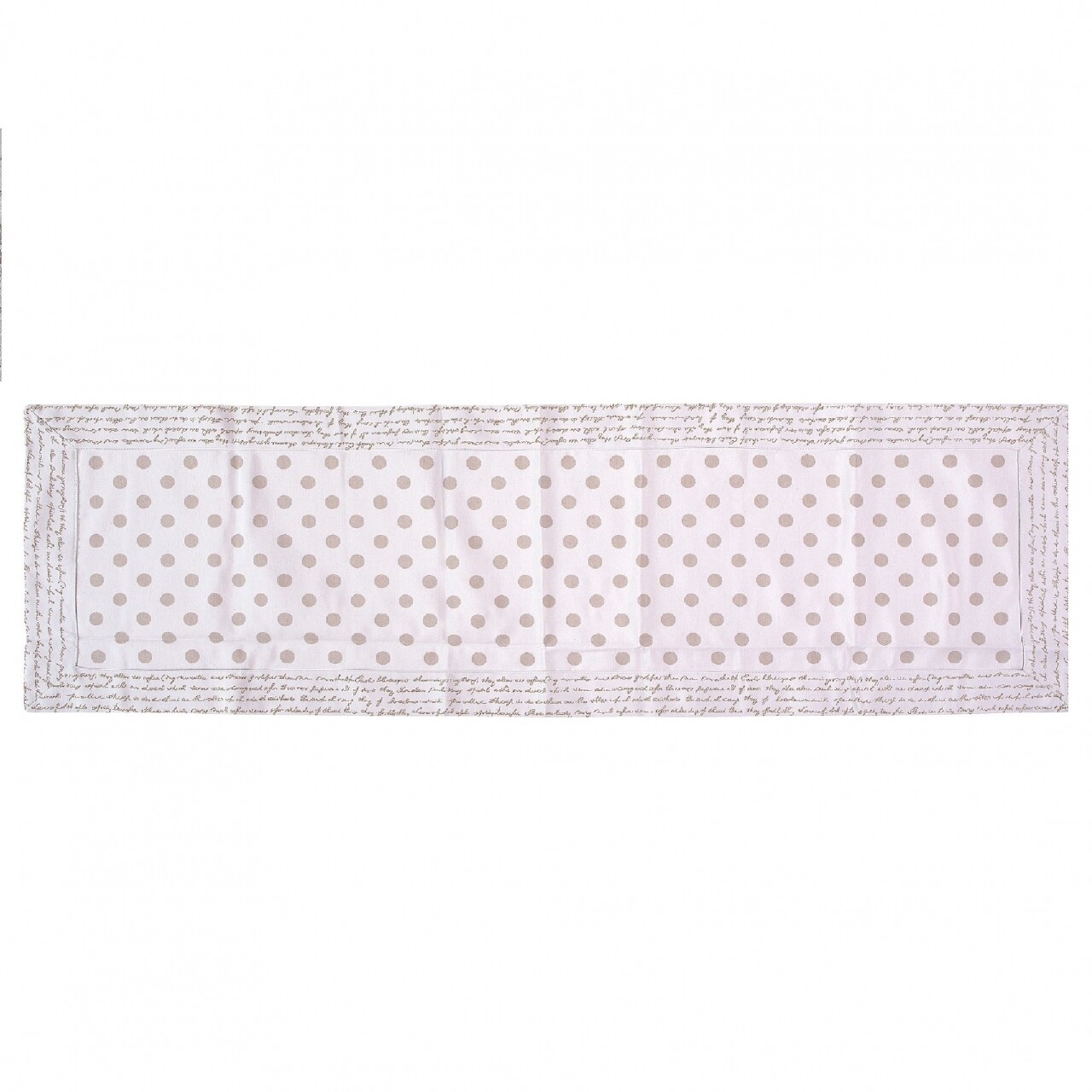 Traversa de masa Pallina DC are un aer delicat datorita imprimeului central cu buline si a scrisului de pe margini. Bejul ce domina traversa contribuie la aspectul sau rafinat, cu accente country.