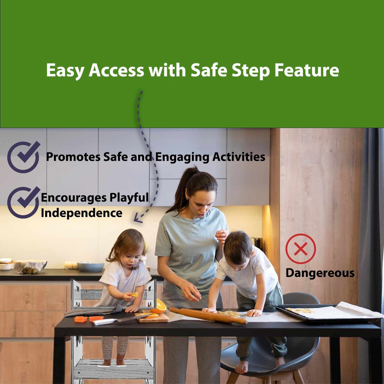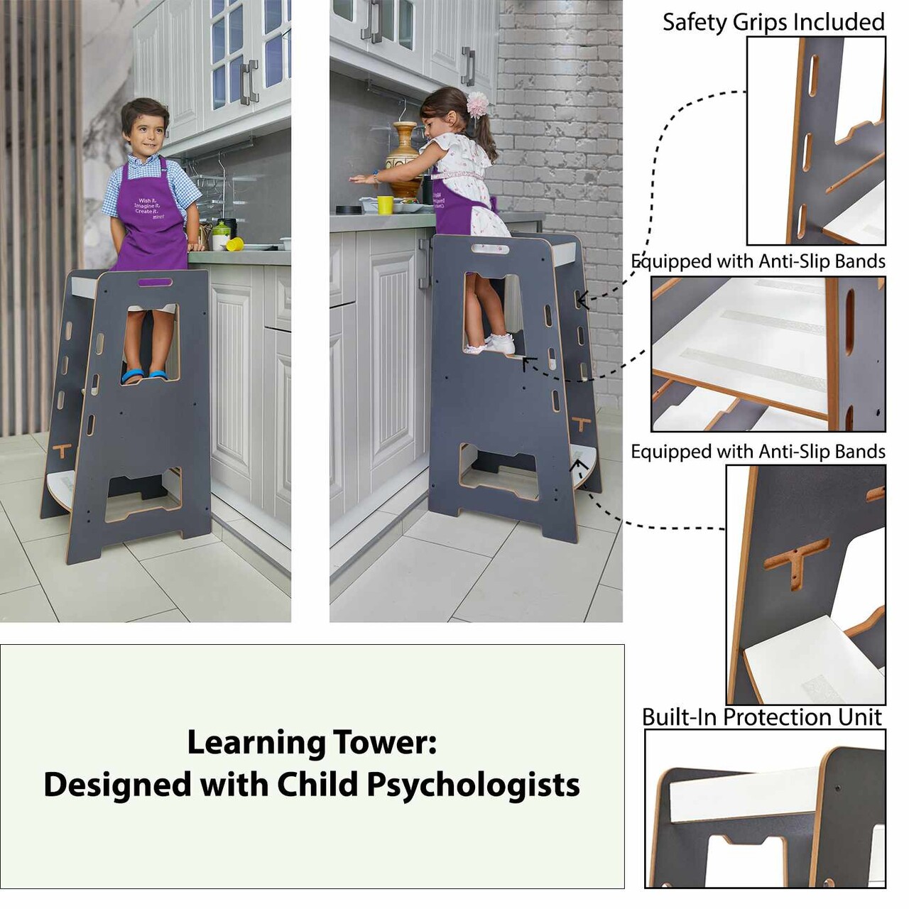 Turn de invatare, Hanah Home, Learning Tower, 40x90x50 cm, Antracit/Alb