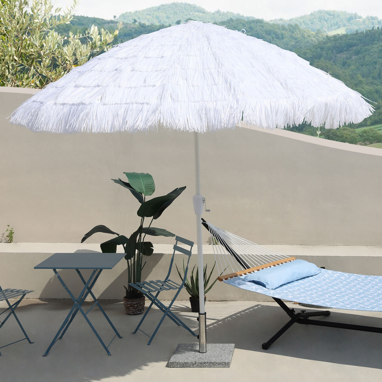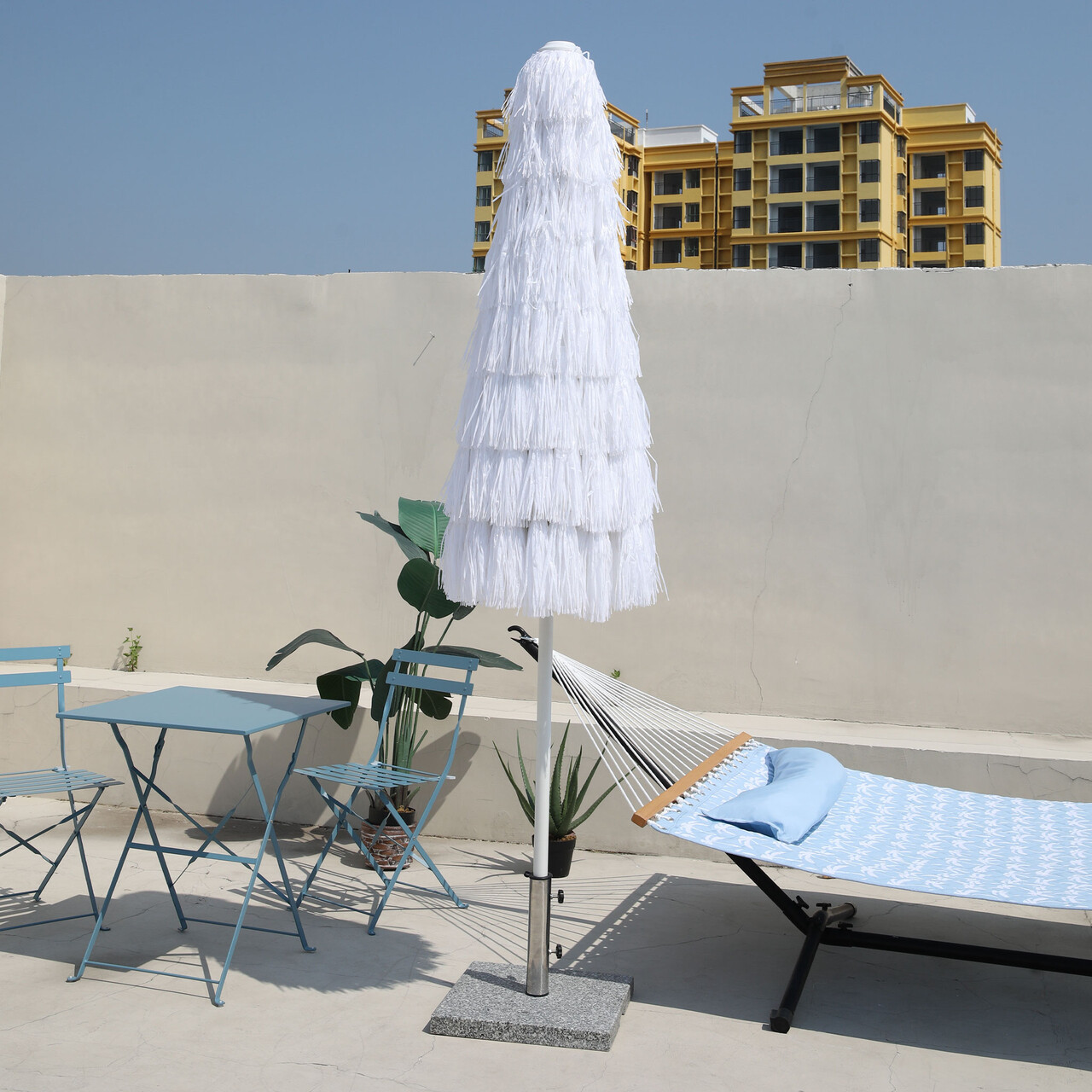 Realizata din structura de otel vopsita in camp electrostatic. Copertina este realizata din poliester 160 g si franjuri din polietilena cu protectie UV.