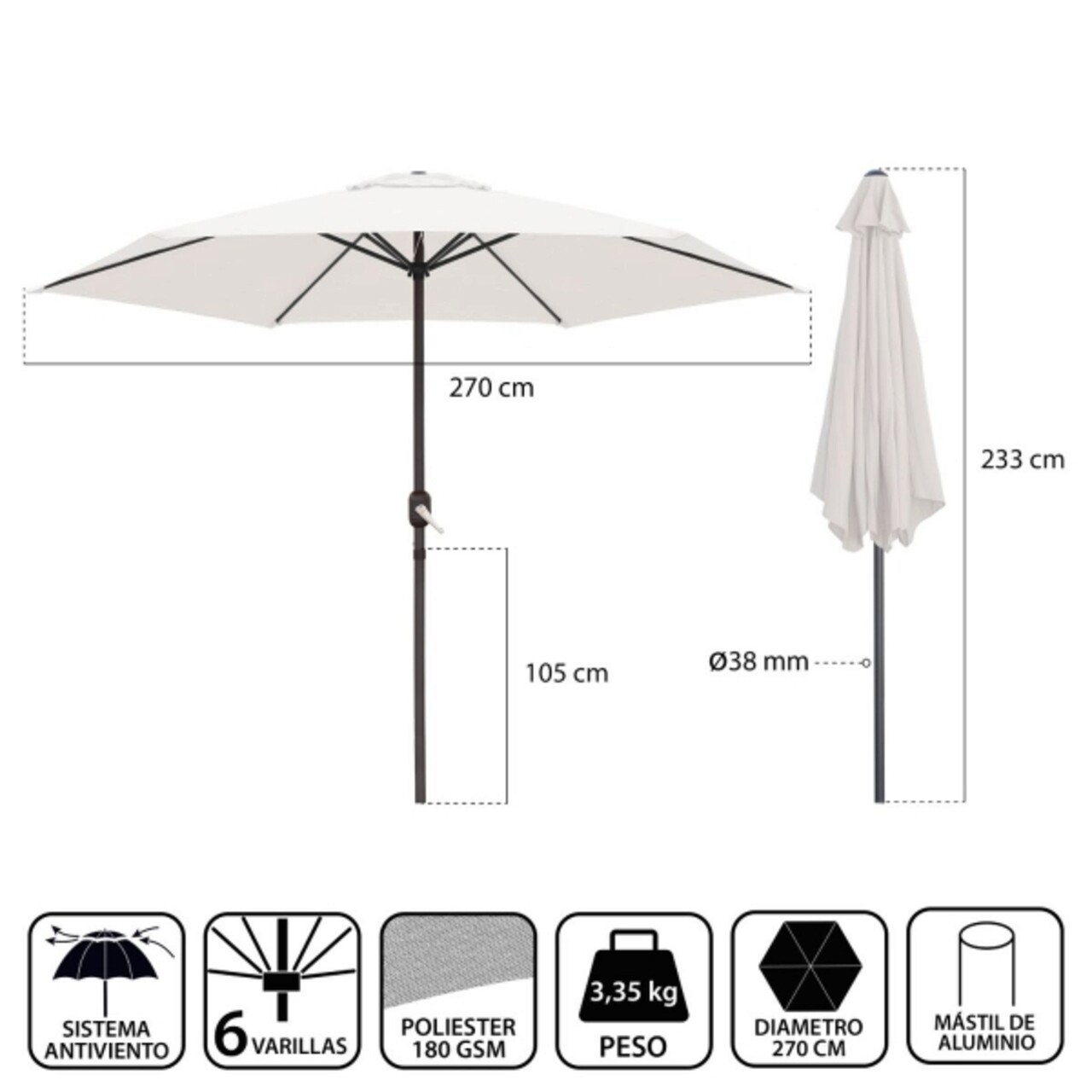 Umbrela de gradina / terasa Monty, Ø 270 cm, Ø38 mm, cu manivela, sistem antivant, aluminiu, alb