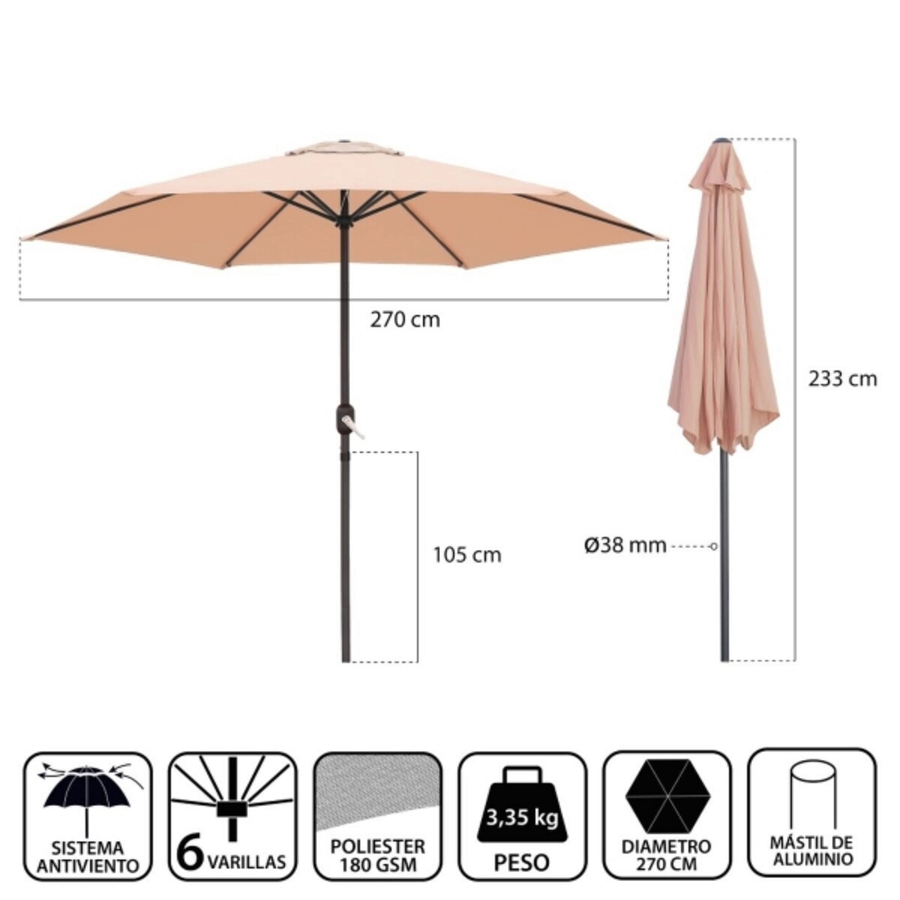 Umbrela de gradina / terasa Monty, Ø 270 cm, Ø38 mm, cu manivela, sistem antivant, aluminiu, bej