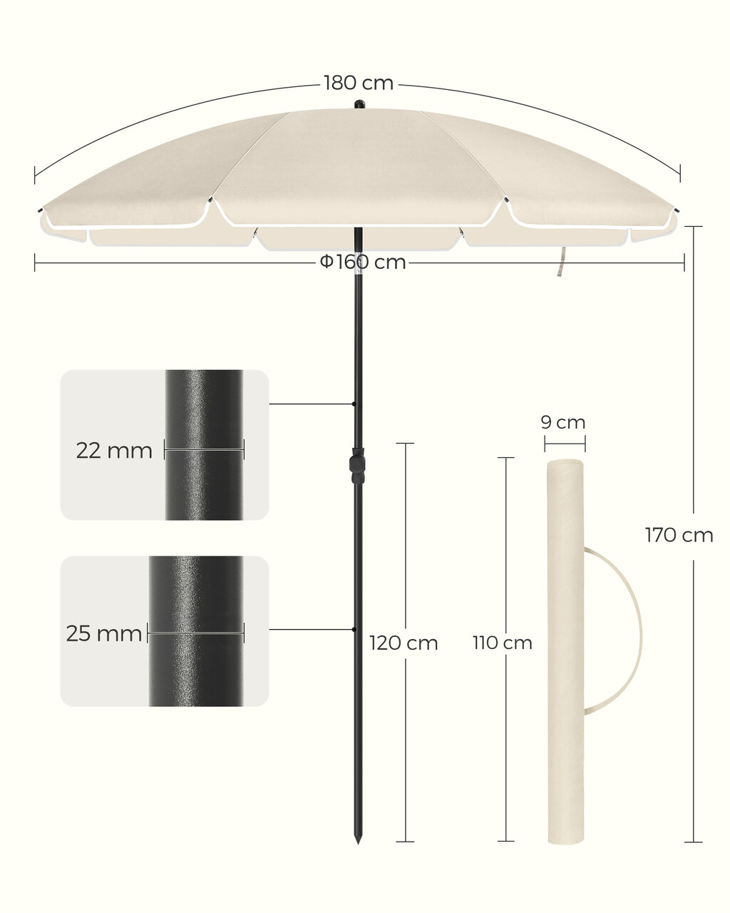 Umbrela pentru terasa, gradina, plaja Songmics, D160 cm, protectie solara UPF 50+, natural