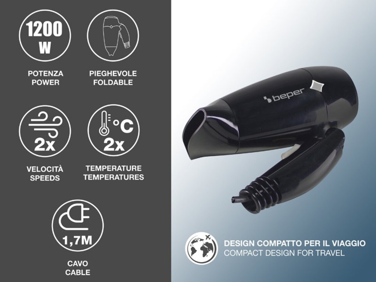 Uscator de par Beper, 17x7x18.5 cm, negru