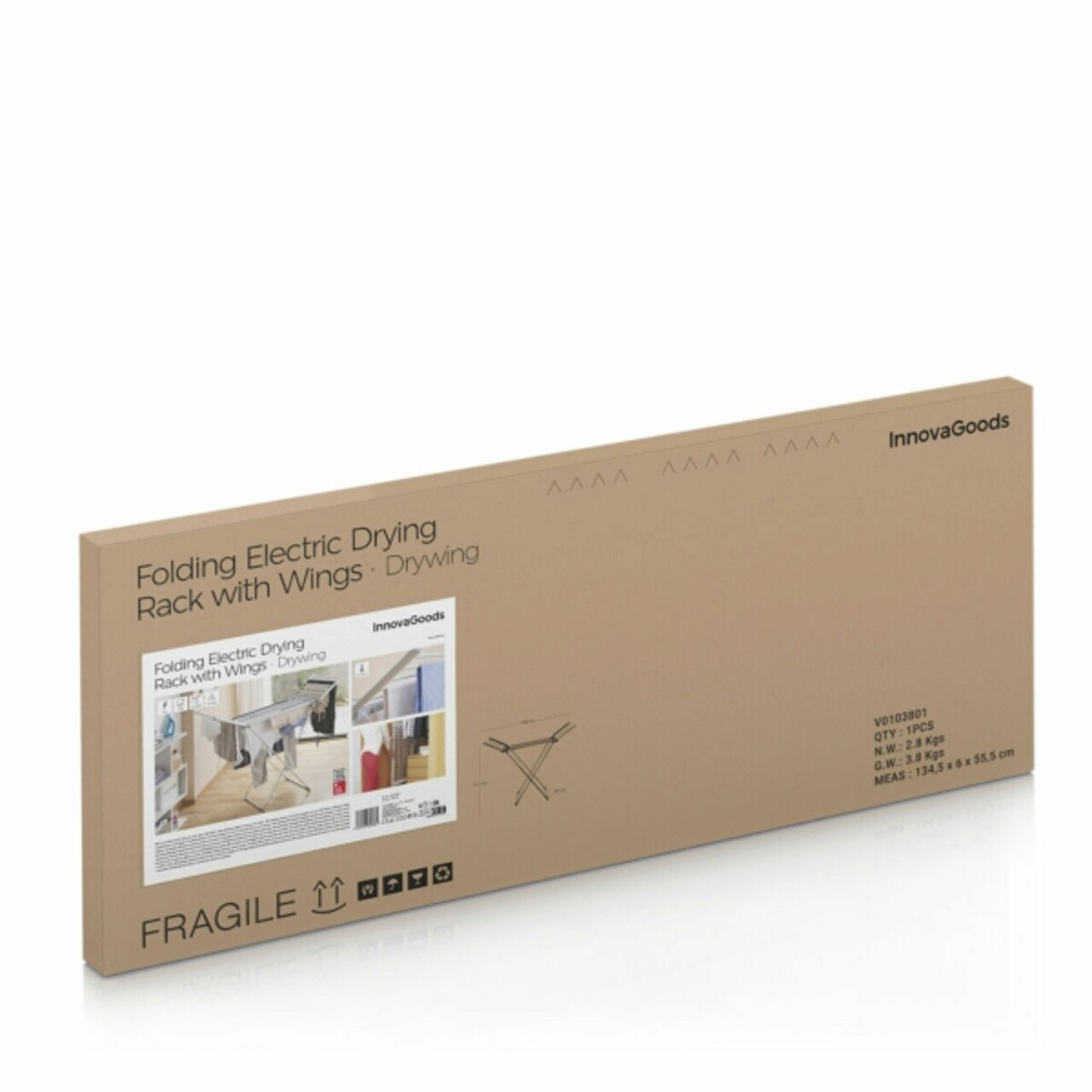 Uscator de rufe electric Drywing, InnovaGoods, 20 bare, 12 kg haine, 230 W, 147 x 113 x 54 cm, aluminiu/ABS, gri