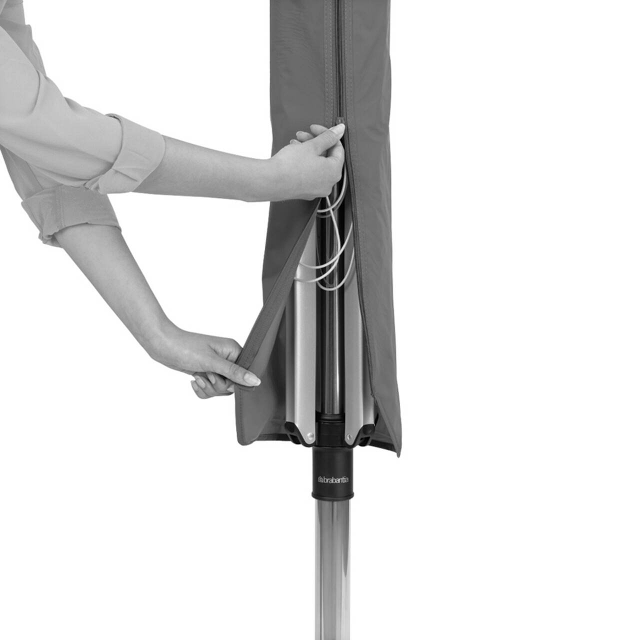 Uscator de rufe rotativ cu 4 brate + cu suport fixare pamant + husa, Brabantia, Lift-O-Matic, 50 m capacitate de uscare, otel, gri metalizat