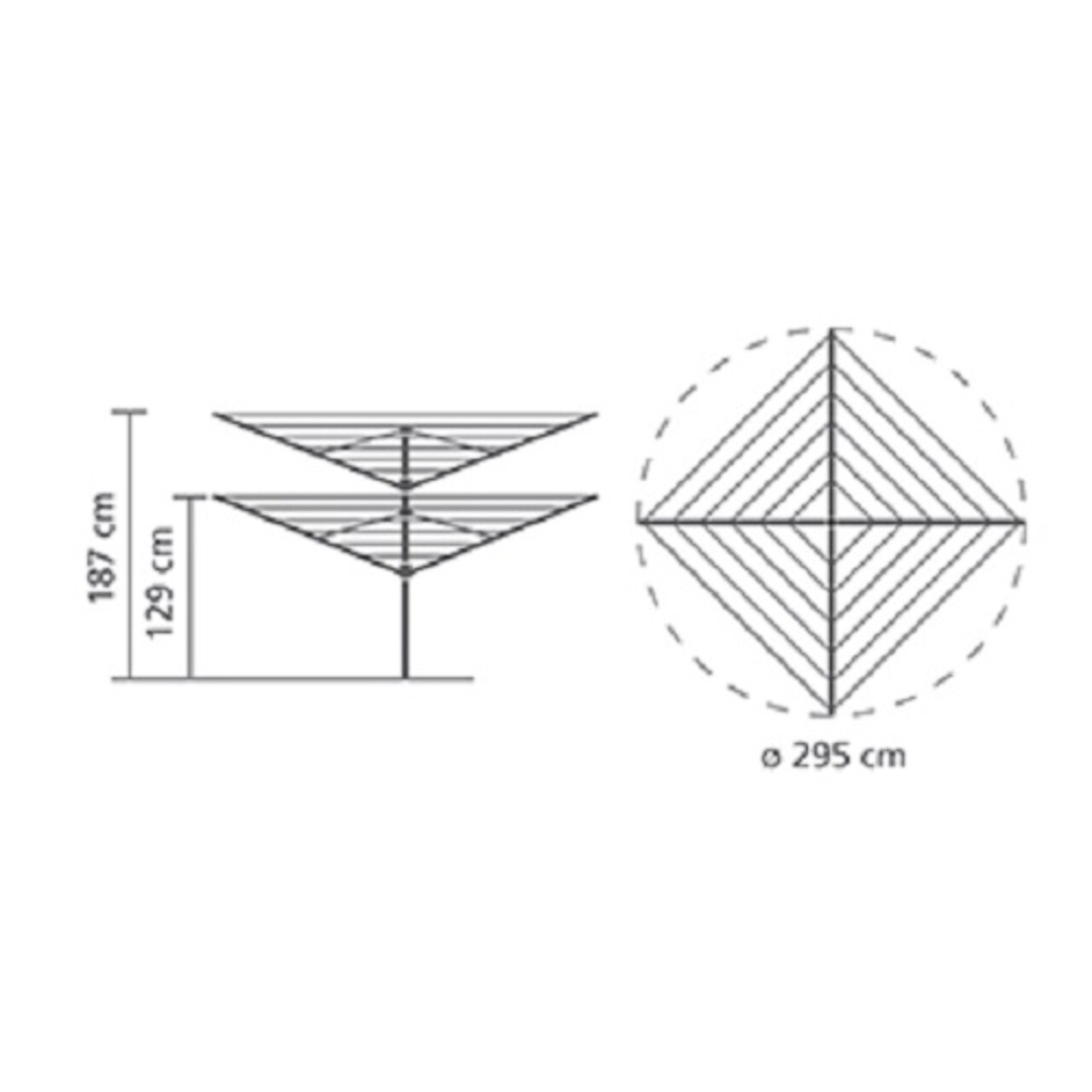 Dimensiuni uscator de rufe pliat: 11x11x200 cm. Diametru total: 295 cm.