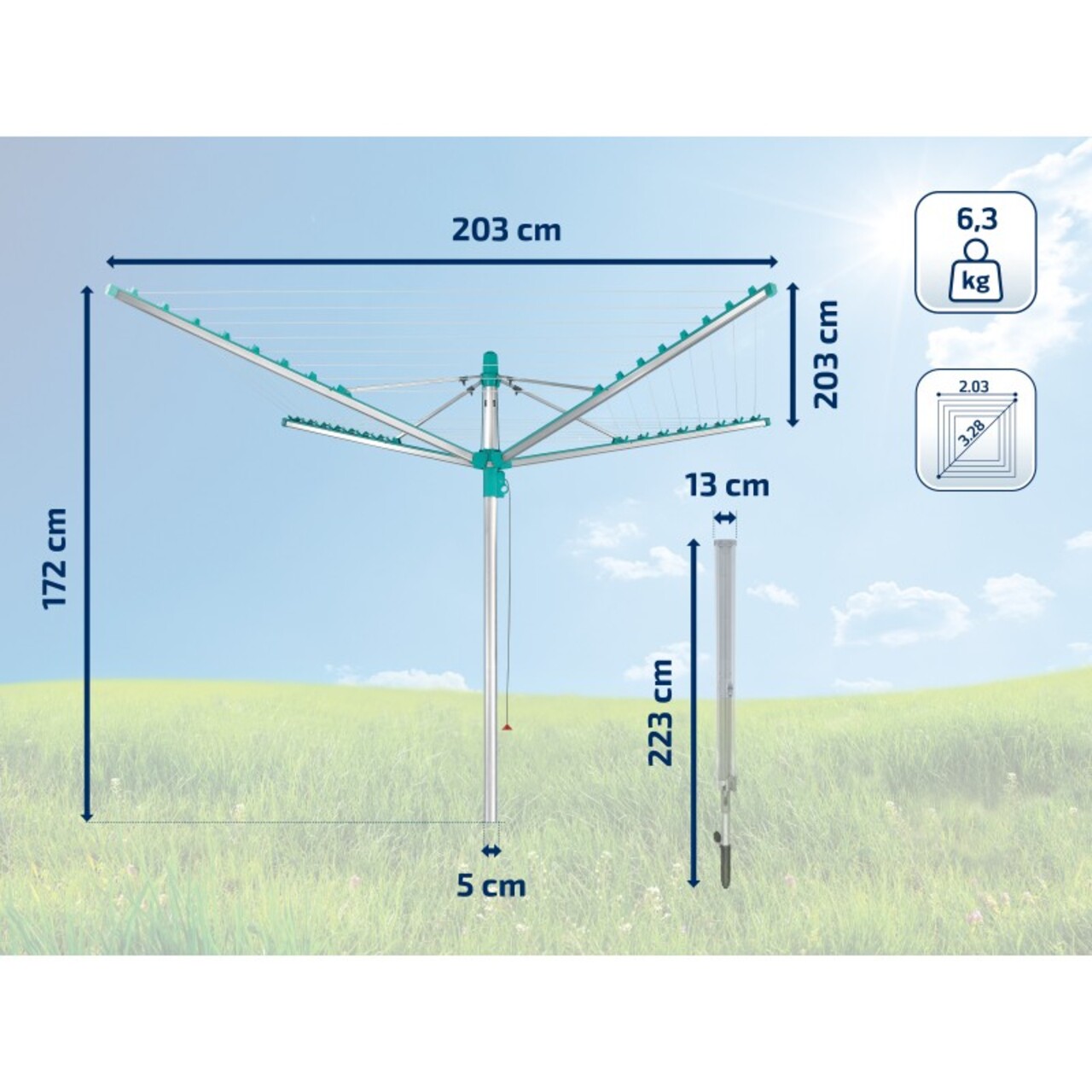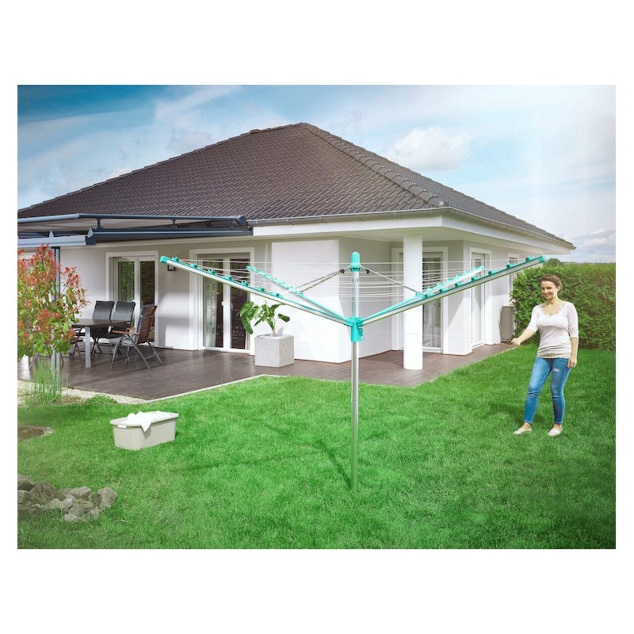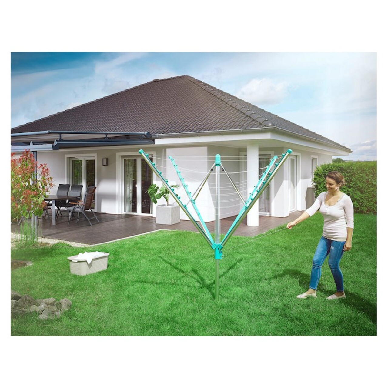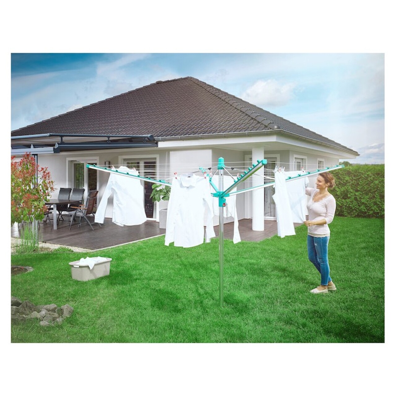 Uscator rotativ cu retragere automata a sforilor, asigurandu-va ca aveti intotdeauna sfori curate si rufe curate.