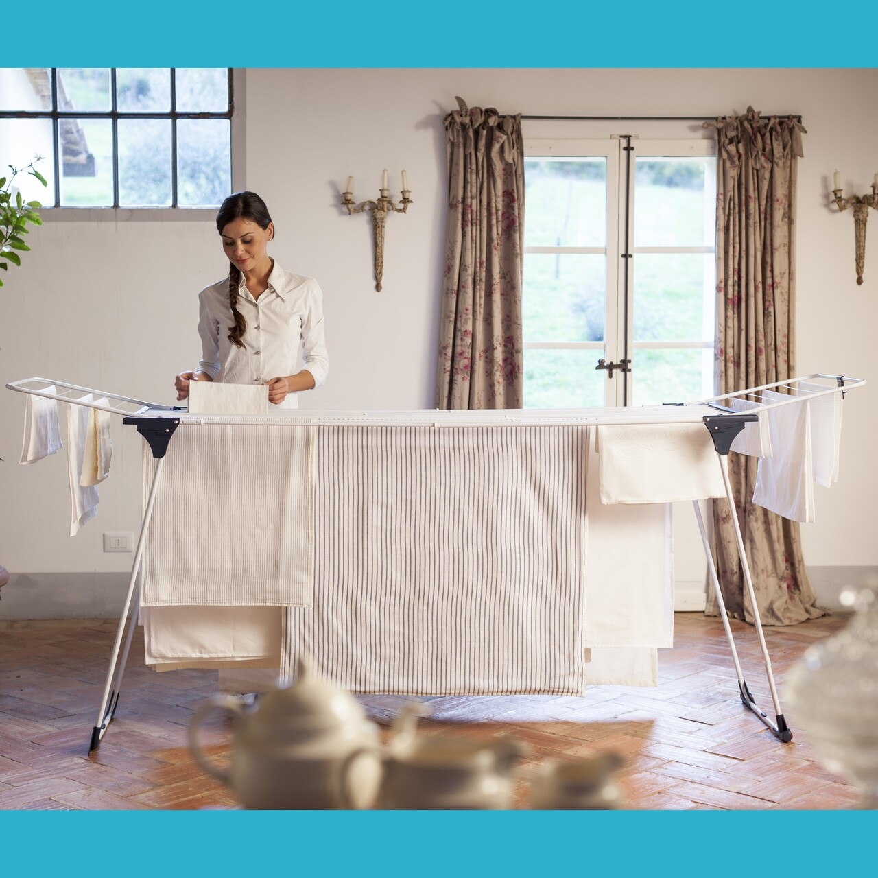 Asezati rufele in mod egal pe toata suprafata uscatorului. Se recomanda curatarea uscatorului de rufe cu o laveta moale, umezita cu apa calduta. A se evita curatarea cu detergenti de tip pudra sau bureti abrazivi care in timp ar putea deteriora aspectul uscatorului de rufe. Dupa utilizare depozitati uscatorul in spatii ferite de umezeala sau de lumina directa a soarelui. Nu depasiti greutatea maxima de rufe recomandata de producator.