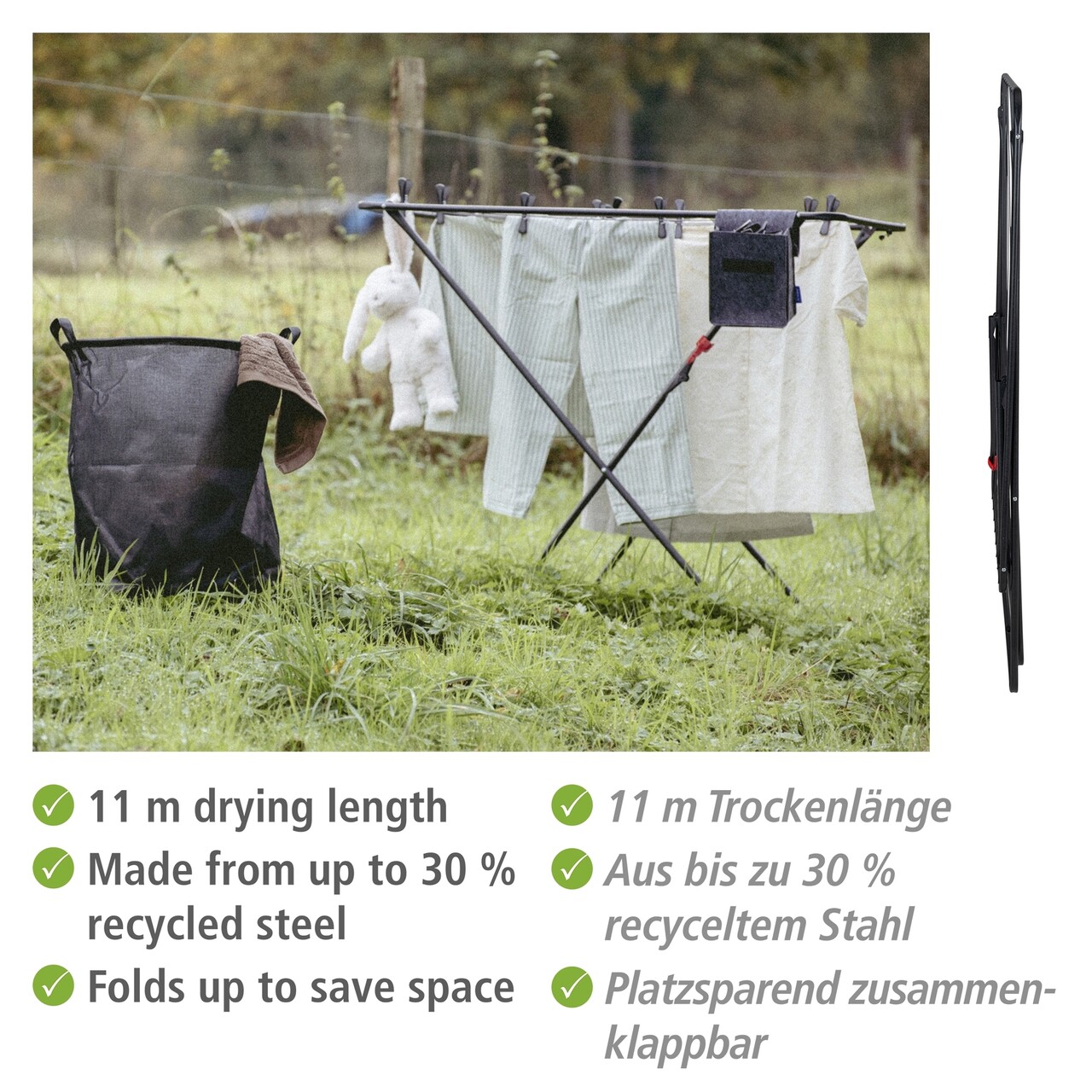 Uscator rufe pliabil Solo Champion, Wenko, 103x54x87 cm, metal/polietilena, negru