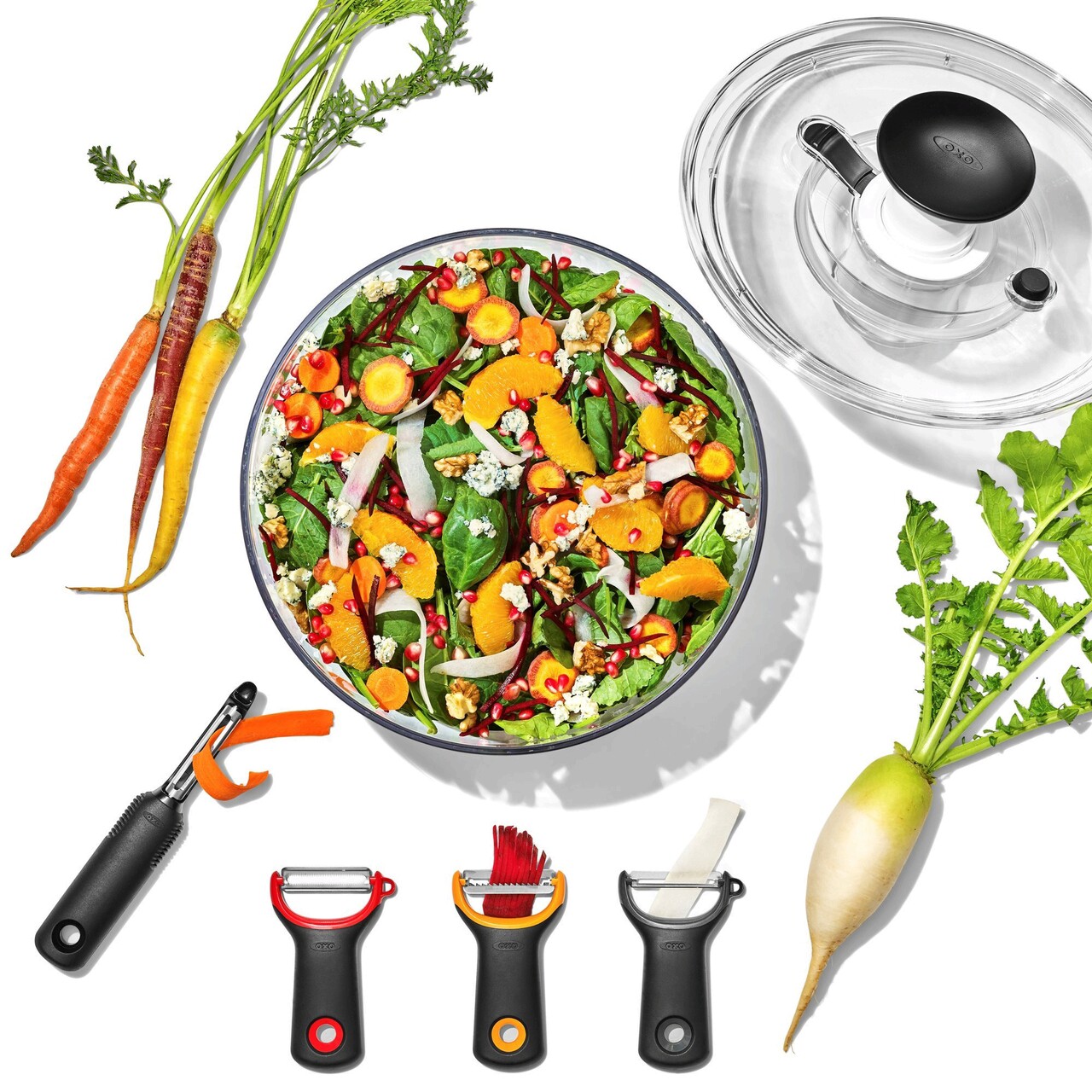 Uscator pentru salata si verdeturi, MarcaOXO, Confectionat dinPlastic fara BPA.
