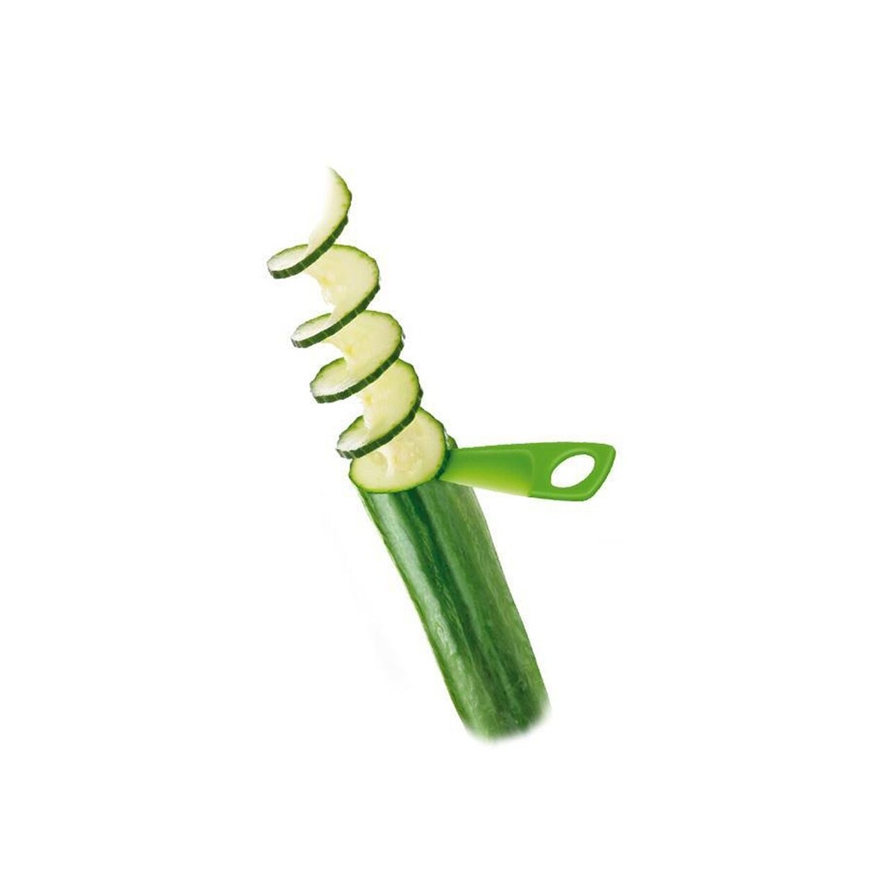 Decoratorul din plastic rezistent este special conceput pentru taierea castravetilor proaspeti, a ridichilor sau a altor legume, in spirale sau fasii lungi, fara risc de accidentare. Se taie capatul legumei, se introduce varful spiralei in centrul legumei si cu miscari usoare se roteste ustensila.