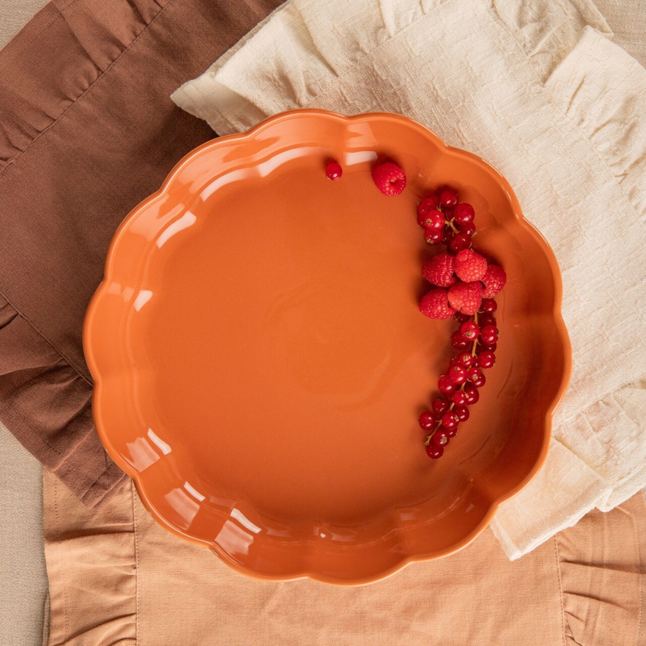 Vasul BRISA, de forma rotunda, incanta prin simplitatea formei si finisajul subtil. Ofera un fundal excelent pentru preparatele servite si le confera un aspect apetisant. Marginea ondulata confera ansamblului un caracter decorativ, iar nuanta calda face ca masa sa devina imediat primitoare si invitanta.