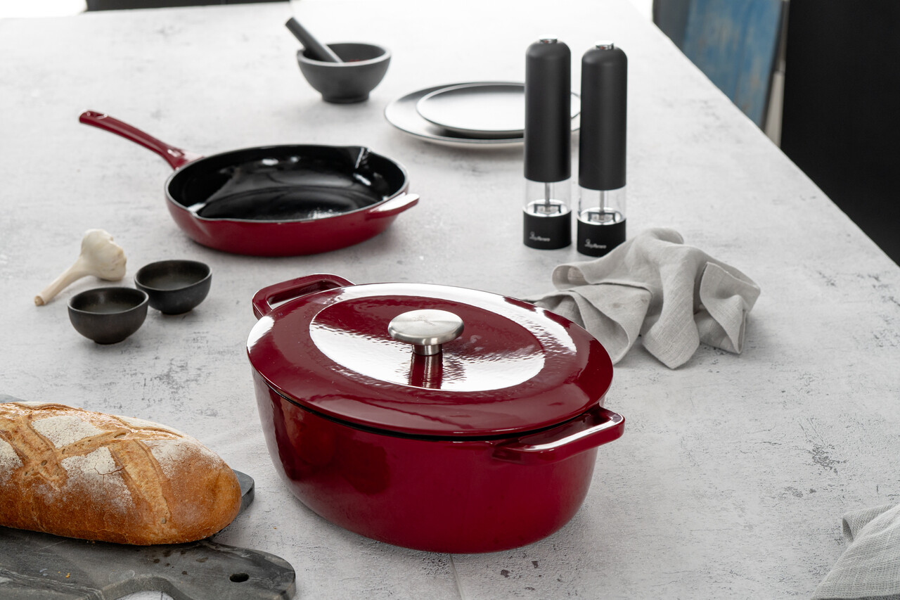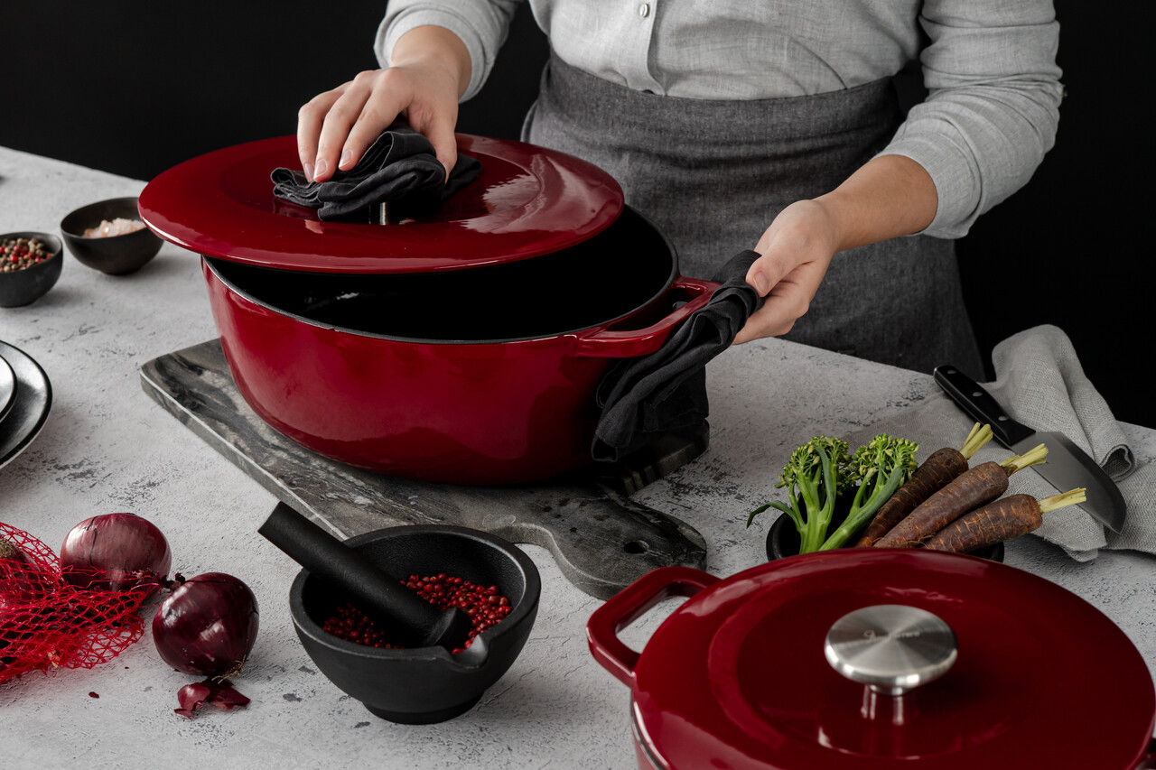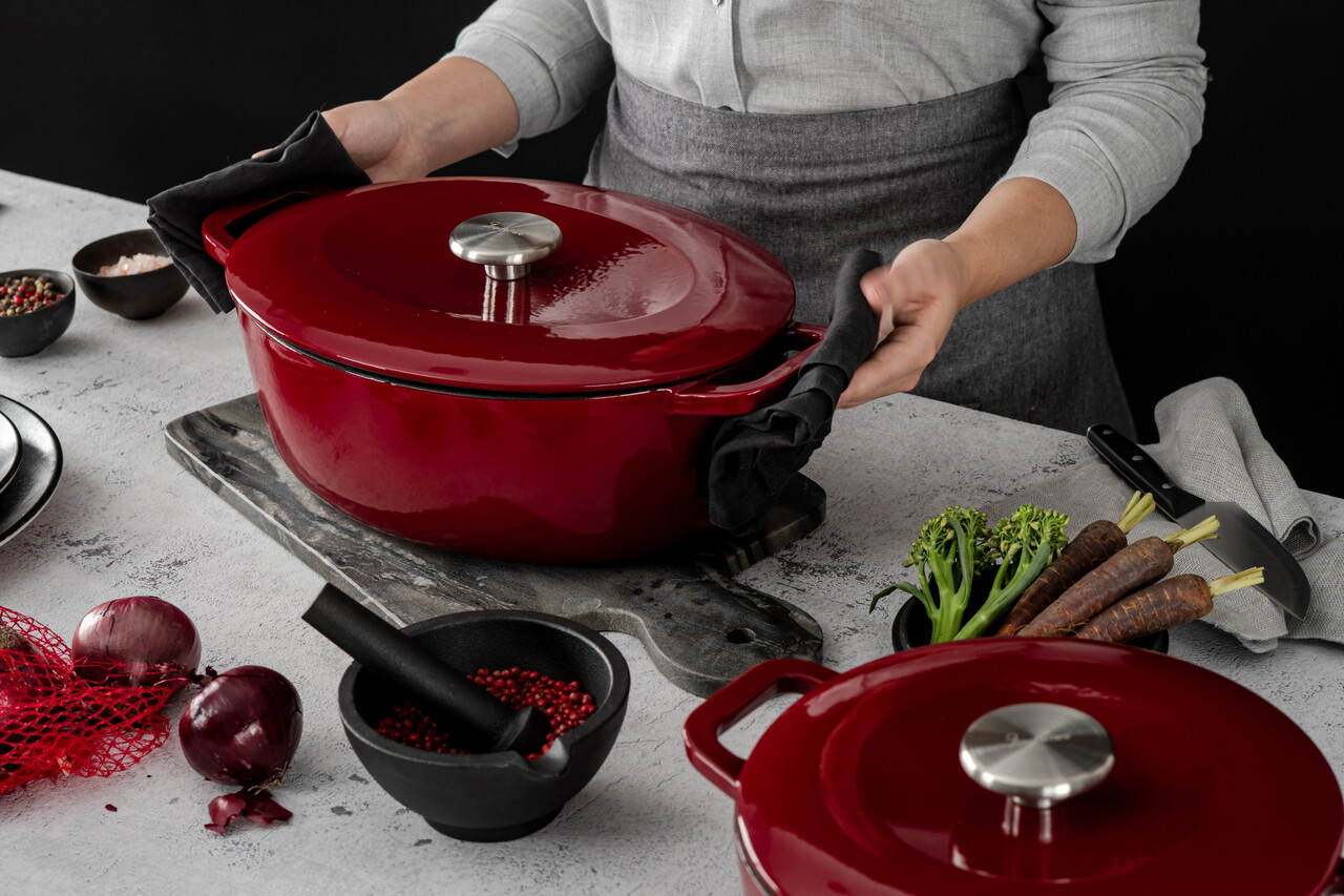 Manerele din fonta se incing in timpul gatitului sau la cuptor - folositi intotdeauna un prosop gros sau manusi de cuptor pentru a ridica vasul.
