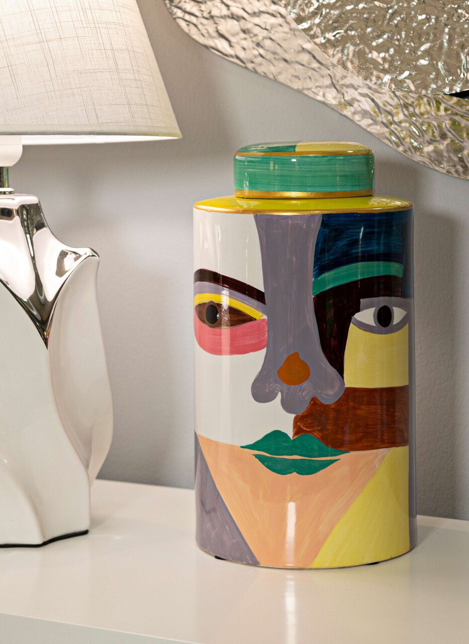 O piesa decorativa in stil artistic, inspirata de cubism, in care formele si culorile se imbina intr-un design creativ si modern. Ideala pentru amenajari cu personalitate si originalitate.