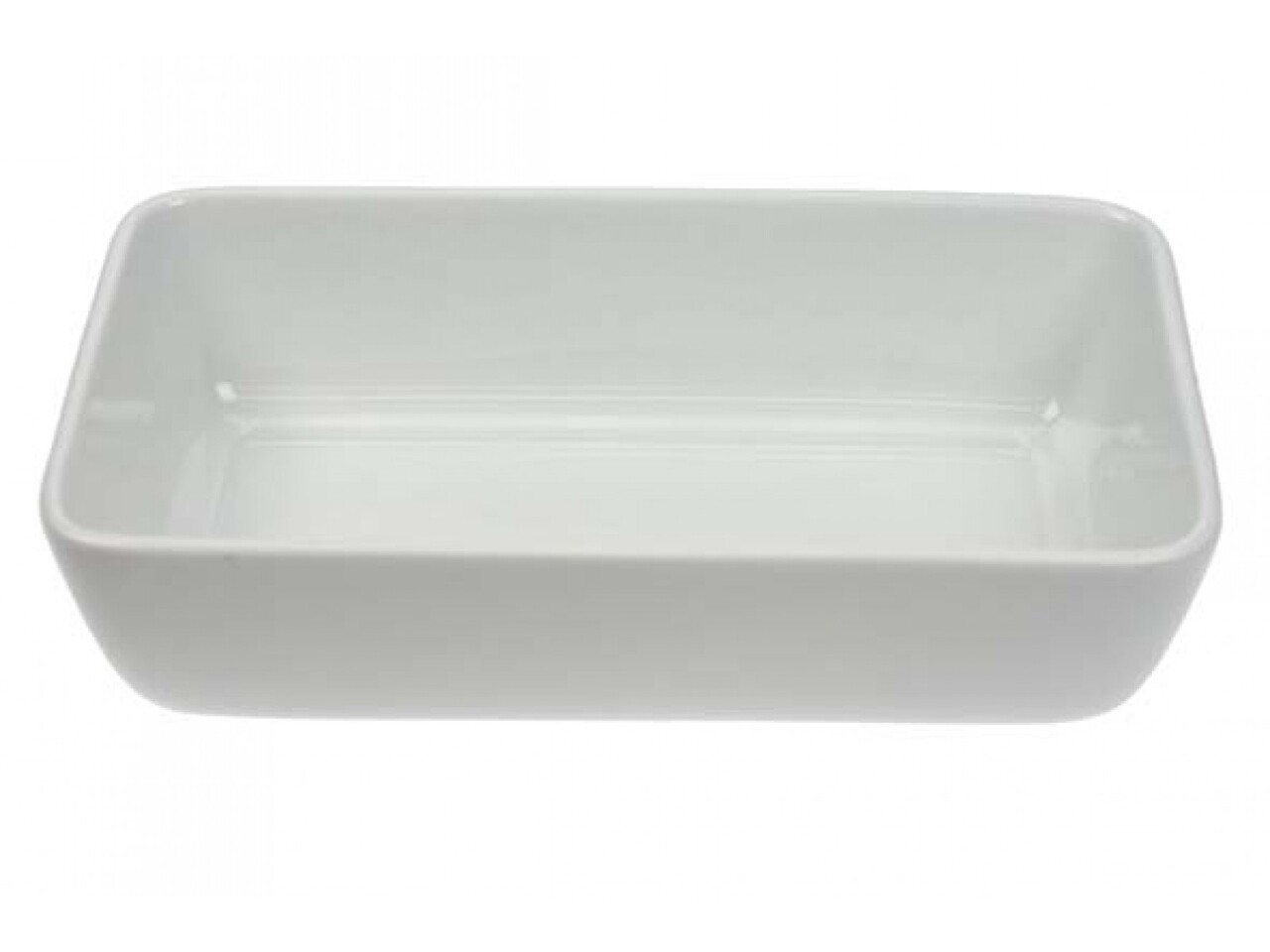 Vasul dreptunghiular pentru lasagna este, din portelan alb, rezistent la uzura si impact, poate fi spalat in masina de spalat vase, poate fi folosit in cuptorul cu microunde.