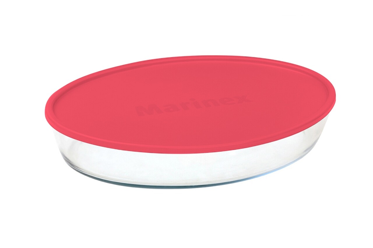 Vas oval cu capac Marinex, 2.4 L, sticla temperata, rosu