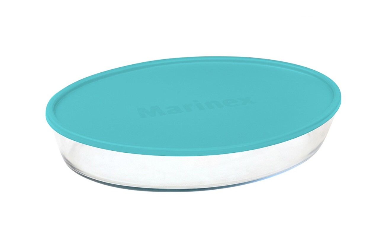 Vas oval cu capac Marinex, sticla temperata, 2.4 L, albastru