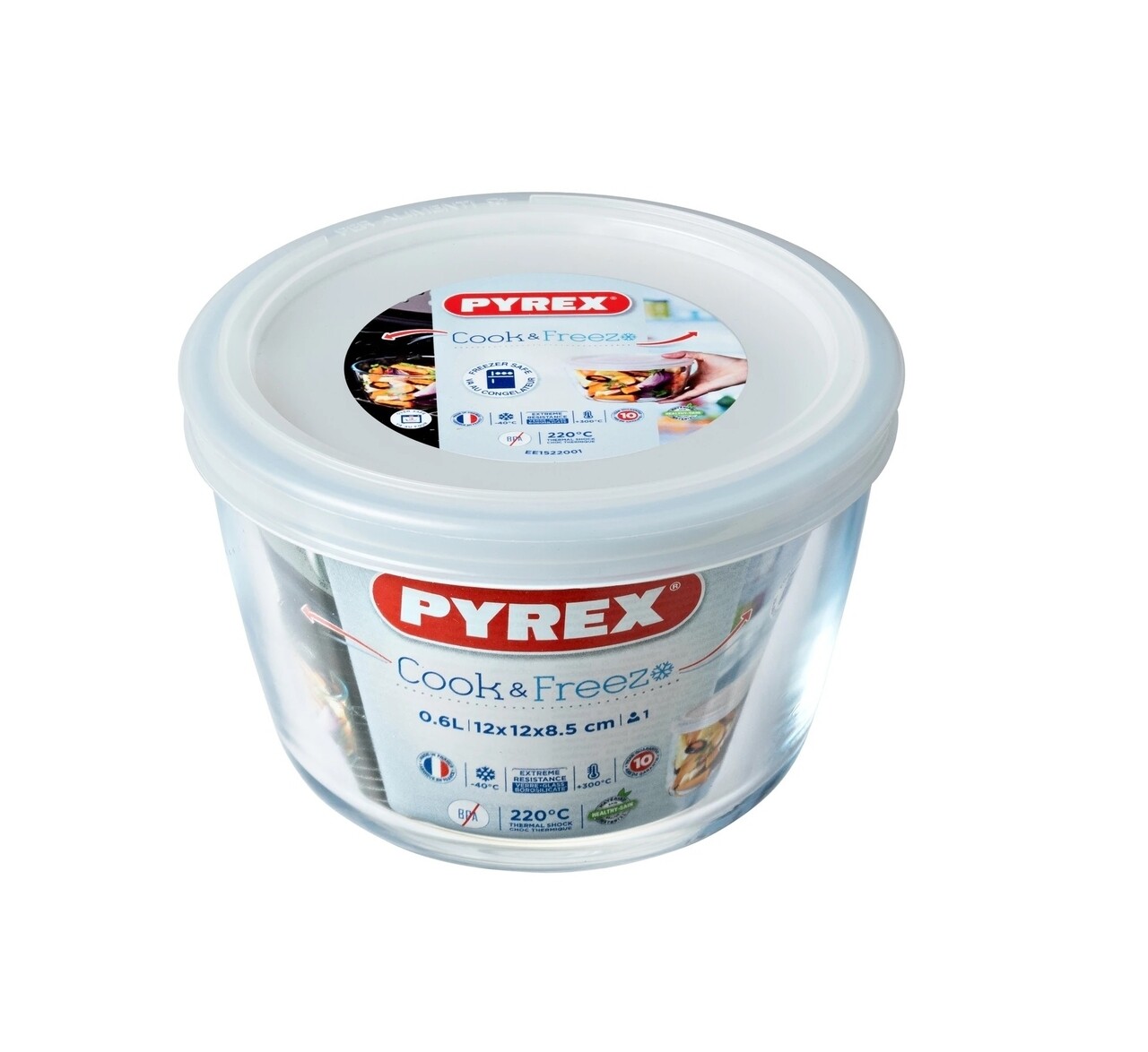 De la cuptor la congelator și invers, în siguranță! Pentru a vă pregăti mâncarea în săptămânile aglomerate, Pyrex a conceput Cook & Freeze, o gamă de vase din sticlă borosilicată, rezistente la căldură, care vă permite să faceți trecerea alimentelor din congelator în cuptor și din cuptor lîn congelator în siguranță. Produsele din gama Cook & Freeze sunt gândite pentru a rezista la un șoc termic de până la 220°C. Fără mâner și cu linii drepte, designul său permite depozitarea optimă în congelator. Vasul pătrat dispune de un capac fără BPA, care ajută la păstrarea și depozitarea alimentelor în siguranță în frigider sau congelator. Vasul este stacabil, fiind astfel ideal pentru economisirea de spațiu în bucătărie. Avantajele sticlei borosilicate: suportă temperaturi extreme de la -40°C la +300°C; este rezistentă la șocuri termice de până la 220°C (vasele din sticlă borosilicată pot fi utilizate din congelator, la o temperatură de -20°C direct în cuptor, la o temperatură de 200°C; nu reține pete și păstrează aromele sau mirosurile (se poate trece ușor de la gătitul mâncărurilor tradiționale la cele dulci, fără ca gusturile să se amestece); este rezistentă la zgârieturi. Instrucțiuni de utilizare și recomandări: produsul poate fi folosit în cuptoare cu microunde și tradiționale, este compatibil cu mașina de spălat vase. Se poate folosi în cuptor direct scos din congelator, dar se recomandă să existe un timp de minim 15 minute între cele două utilizări. Nu folosiți produsul deasupra plitelor de orice fel. Nu puneți vasul fierbinte pe suprafețe reci sau ude. Nu turnați lichide reci în vasul fierbinte. Nu folosiți bureți sau soluții abrazive pentru curățare. Nu folosiți vasul dacă este ciobit. Nu se folosește capacul din plastic în cuptorul tradițional.