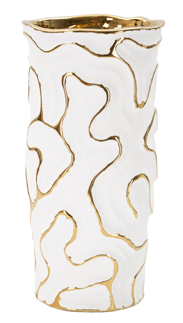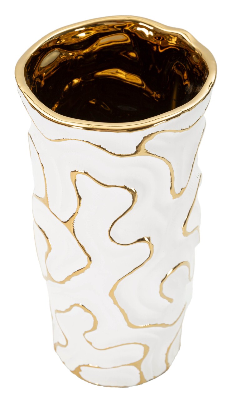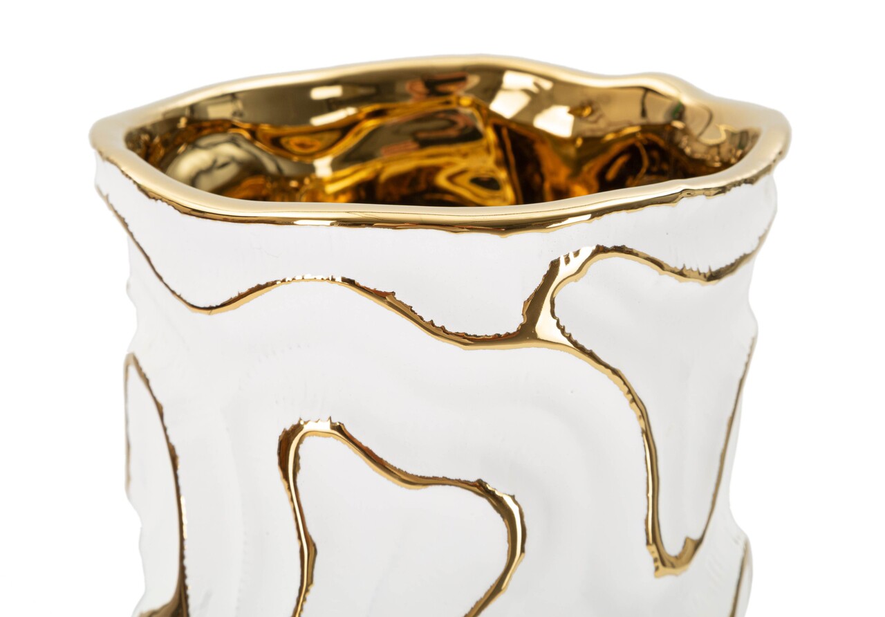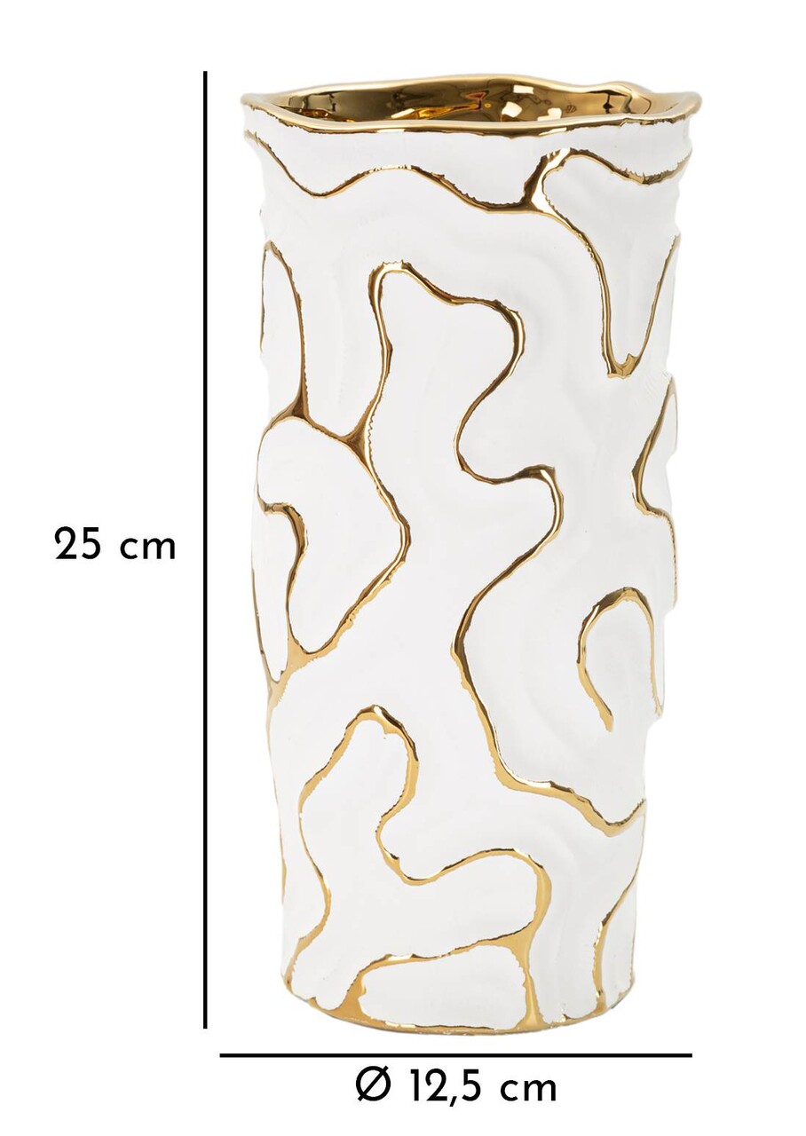 Vaza Adore, Mauro Ferretti, 12.5x12.5x25 cm, ceramica, alb/auriu