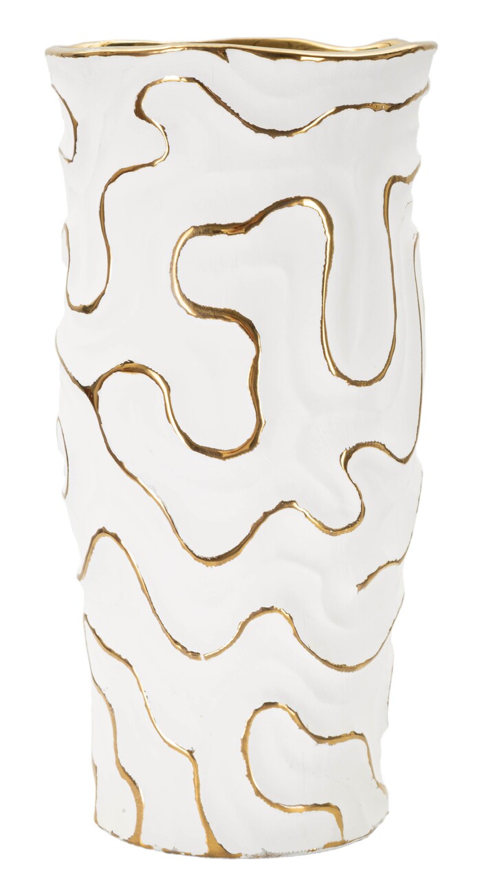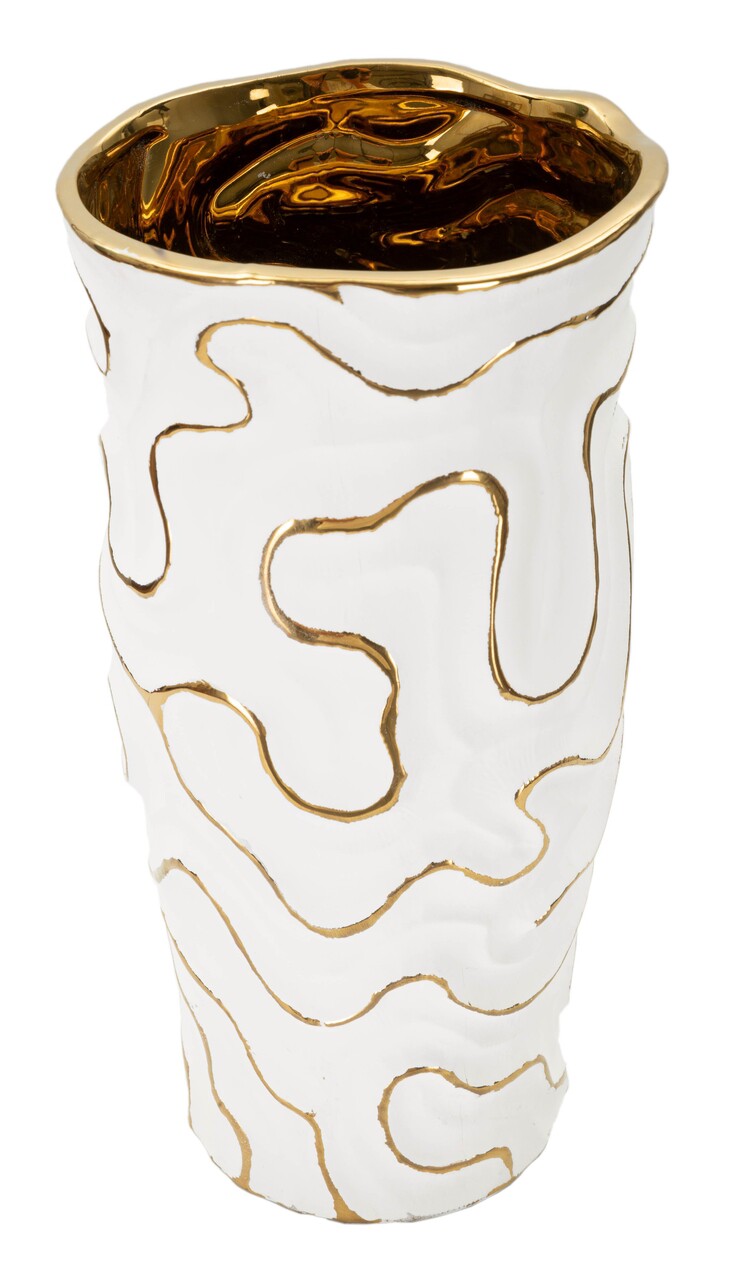 Vaza Adore, Mauro Ferretti, 16x16x32.5 cm, ceramica, alb/auriu