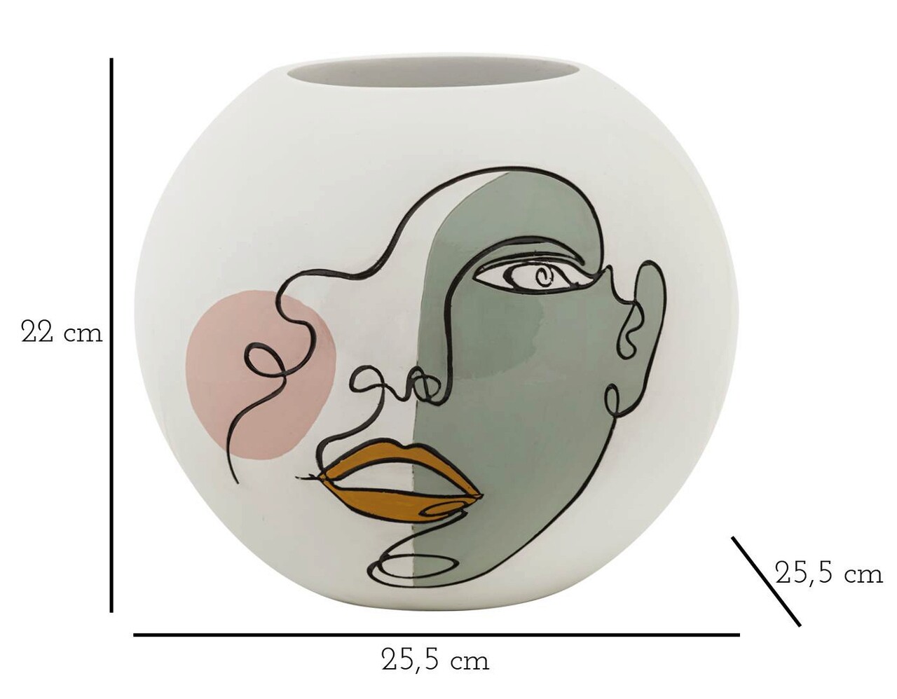 Vaza rotunda, fin decorata cu o fata cu design abstract.