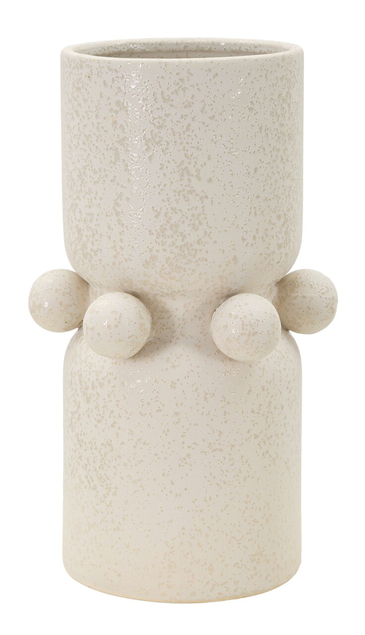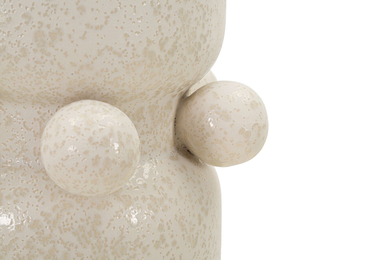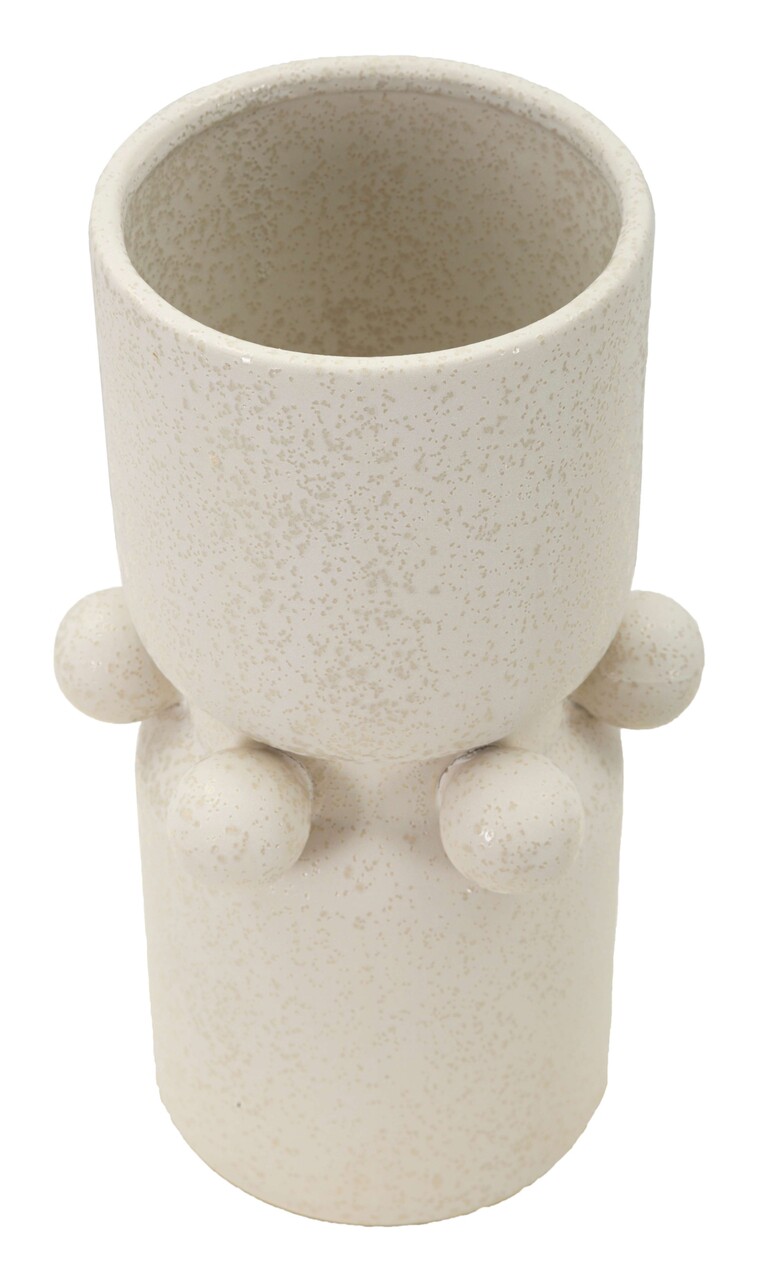 Vaza din ceramica alba, cu un design elegant accentuat de sfere decorative in relief. Ideala pentru interioare cu stil minimalist sau contemporan. Deschidere superioara: Ø 10.5 cm