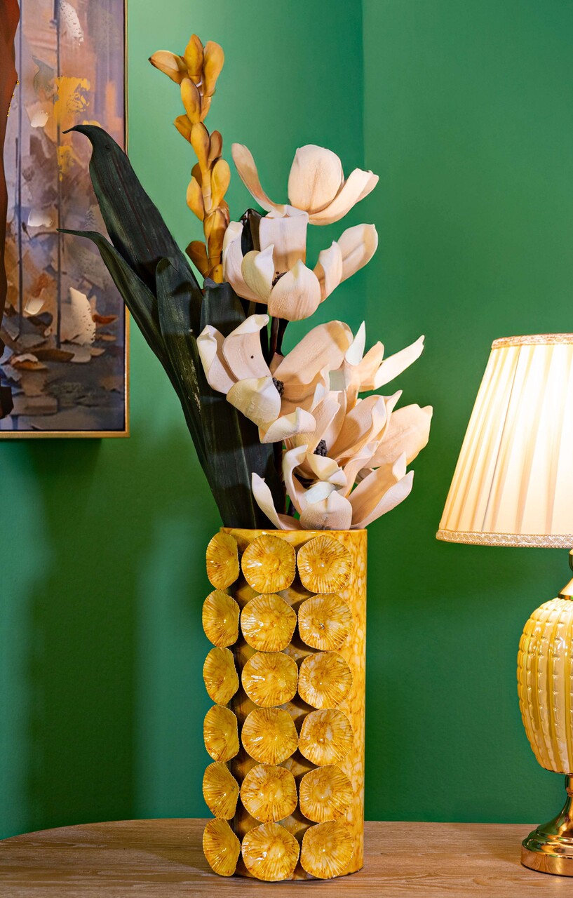 Vaza decorativa Drop, Mauro Ferretti, 16x15x33 cm, fier, galben