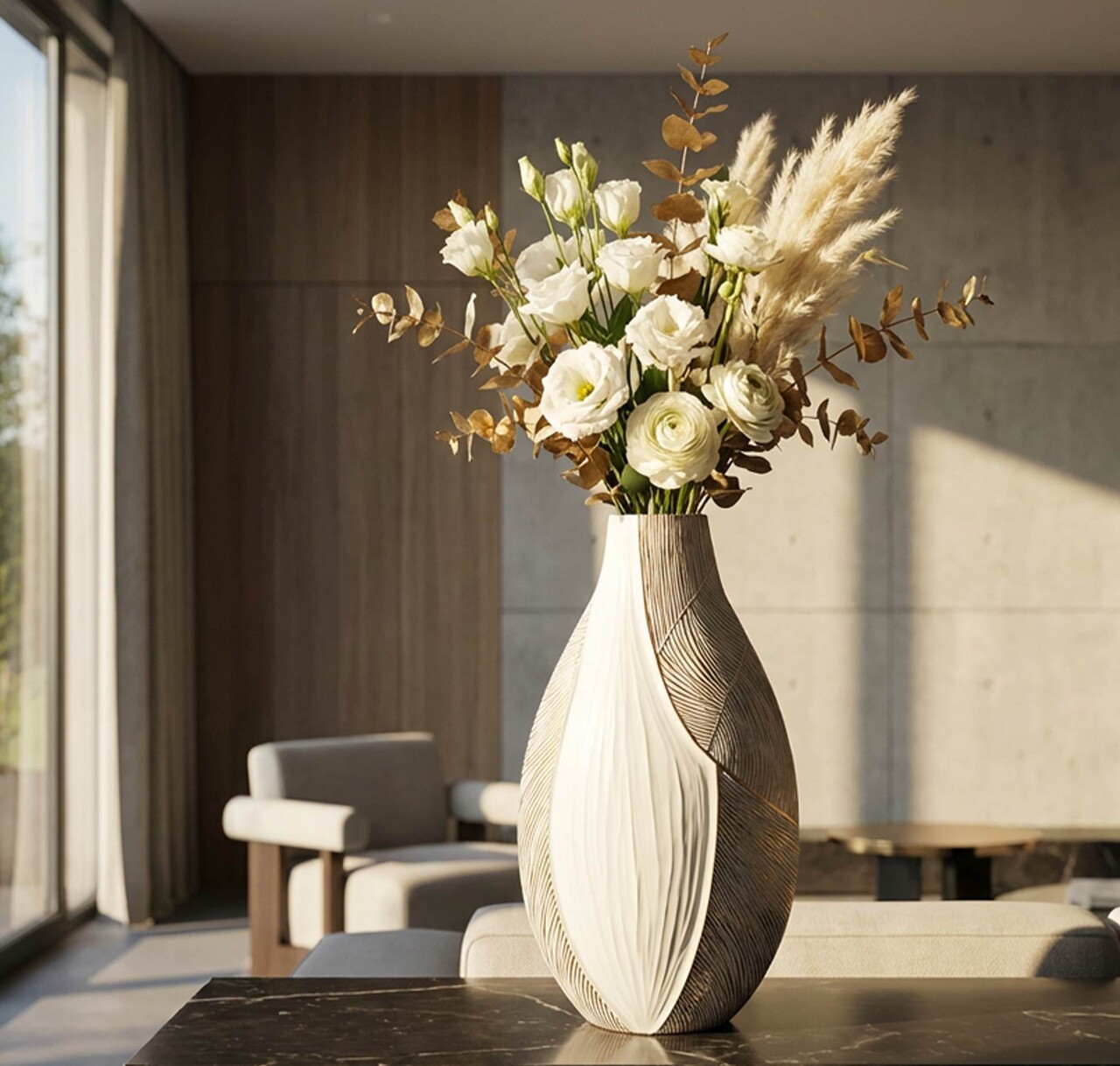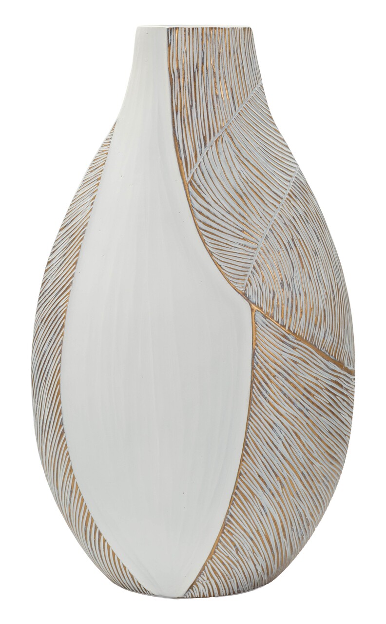Vaza decorativa, Mauro Ferretti, Ho Chi Minh, 29.5x13.5x50 cm, polirasina, alb decolorat