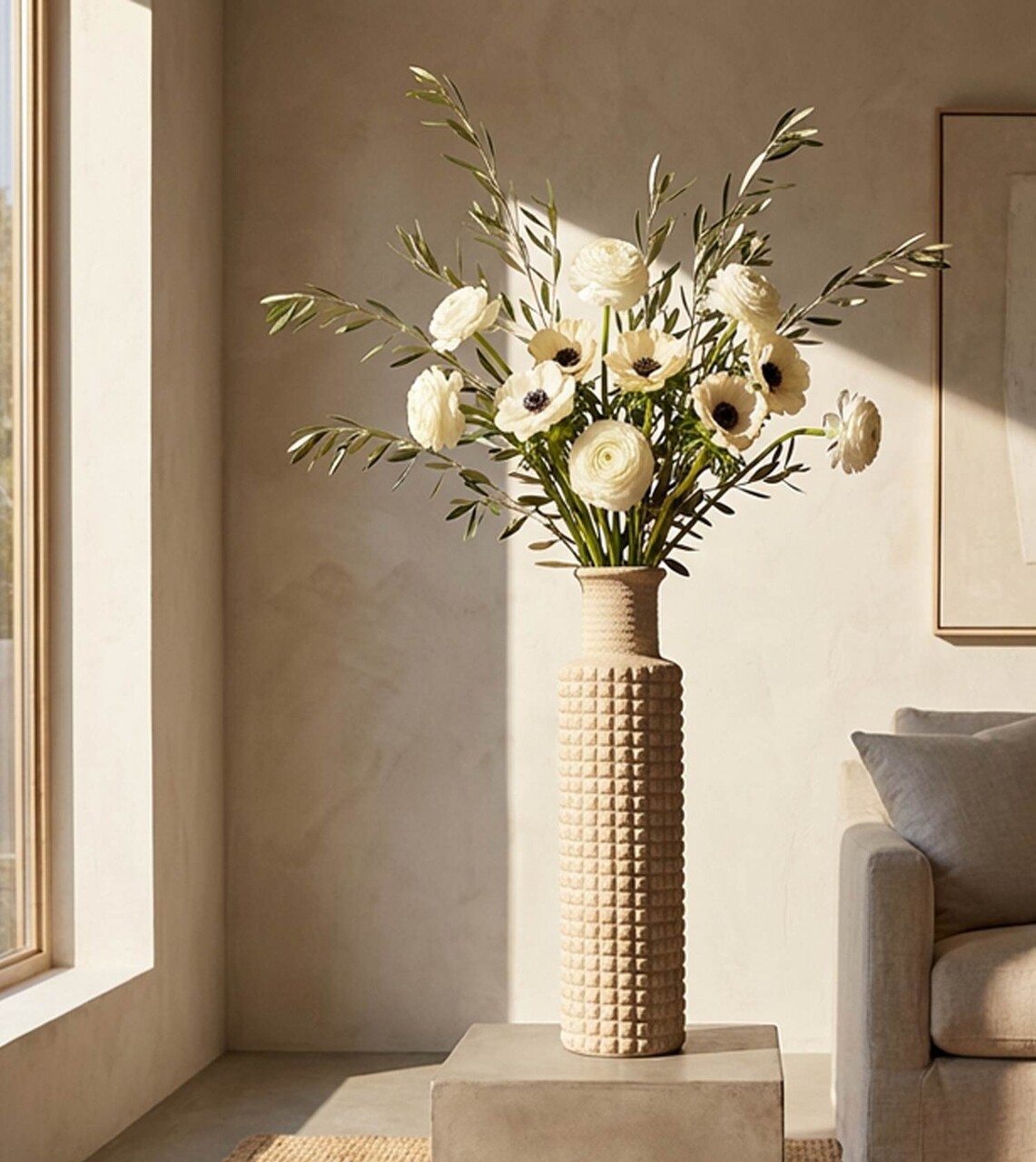 Vaza decorativa, Mauro Ferretti, Sand Outdoor, 24.5x97 cm, polirasina, bej